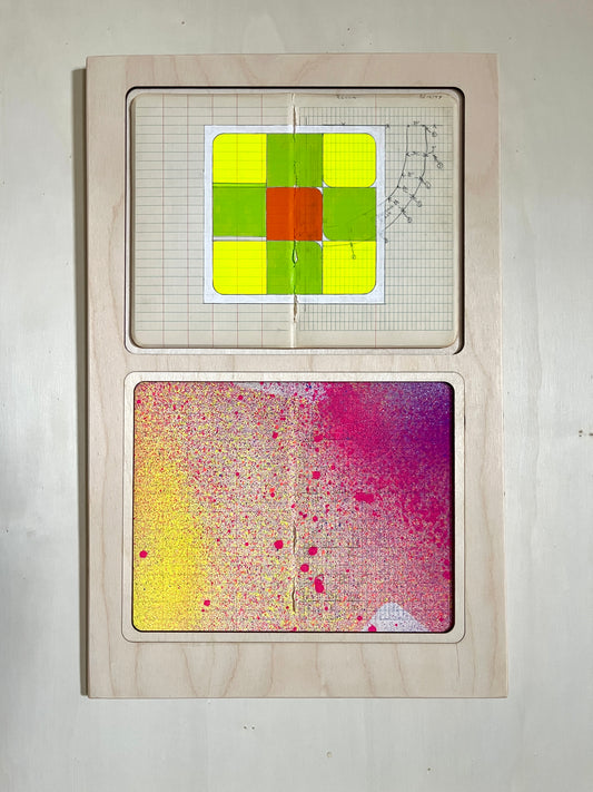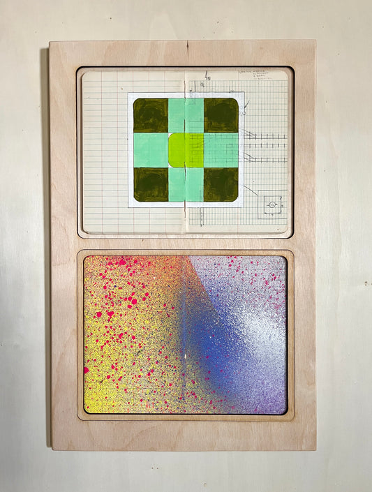 Shelby is a mixed media artist whose work focuses on time, specifically the time within motherhood. Soft, washed colors mixed with spunky, spicy marks represent an abstraction of life, a mother balancing it all. Repetition and routine are the grounding elements—woven throughout the compositions.