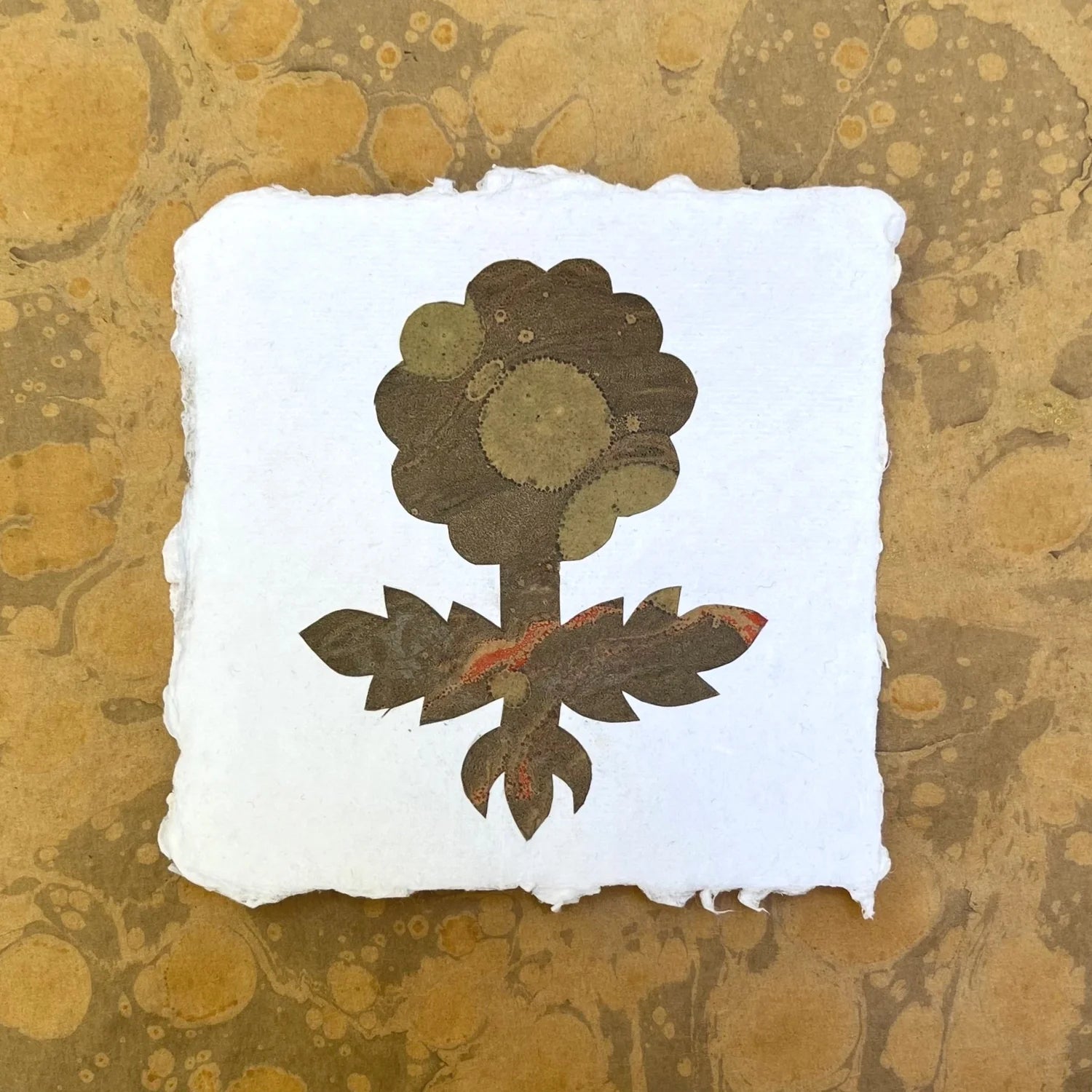 A limited release of mini marbled Florentine Flowers, cut from hand-marbled paper Louisa collected during a recent trip to Florence, Italy.