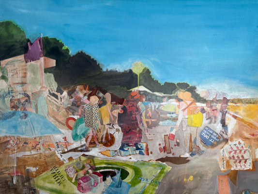 His work often incorporates a method of transferring printed images onto canvas/panel via gloss medium, creating a unique surface from which to begin painting. His work is in private collections throughout the US.