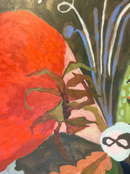 Her work reimagines common plants using whimsical colors and playful, painterly forms that speak to a communally-thriving vision of the future, beyond the shadow of the climate crisis, the two-headed snake of capitalism/colonialism, and anthropocentrism.