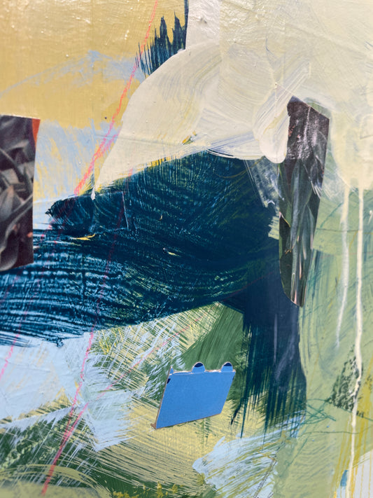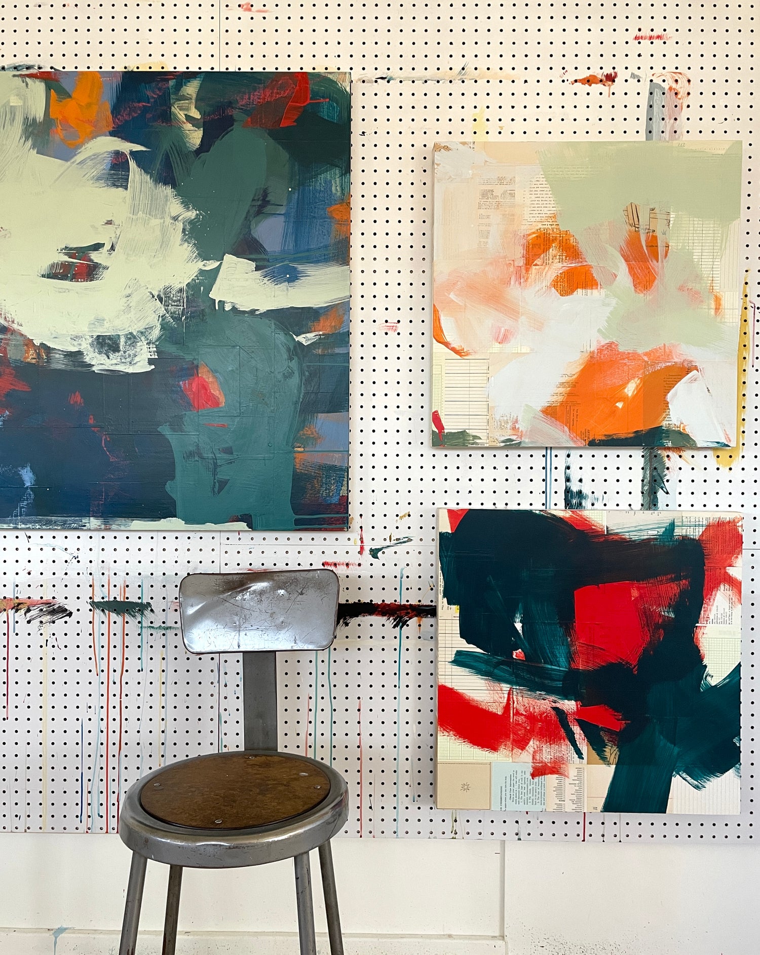 My inspiration truly comes from the act of creating - the physicality of brushing on paint and drawing lines, the surprises revealed in colors and marks interacting with one another - this is what settles my thinking mind and lets my creative inspiration take center stage.