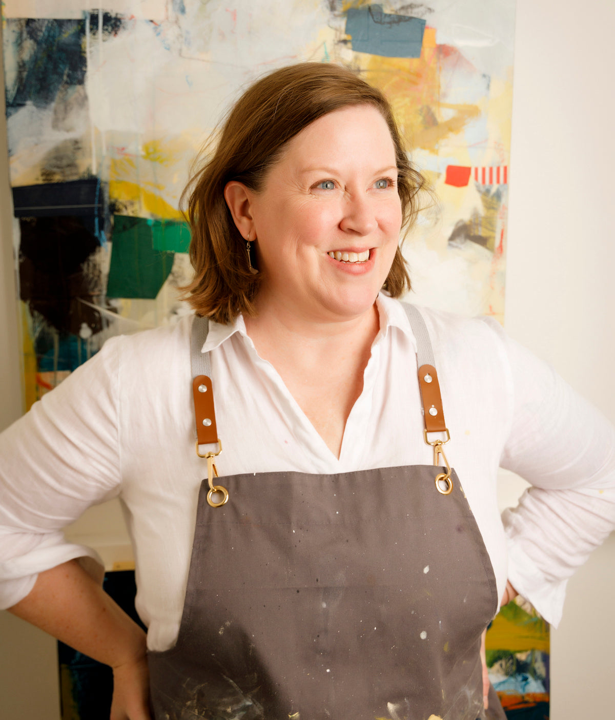 Megan Woodard Johnson is a mixed media artist living and creating in West Bend, Wisconsin. Johnson received a formal education in Graphic Design and Fine Art Printmaking from Shepherd University in West Virginia, earning her BFA in 1996. 20 years ago she shifted to mixed media painting and never looked back. Johnson spent her formative years moving around the country, gathering up experiences before moving to Wisconsin and gradually putting down roots. She leads a rich life focused on noticing moments and making connections, filtering all of these into the layers that build up her paintings.