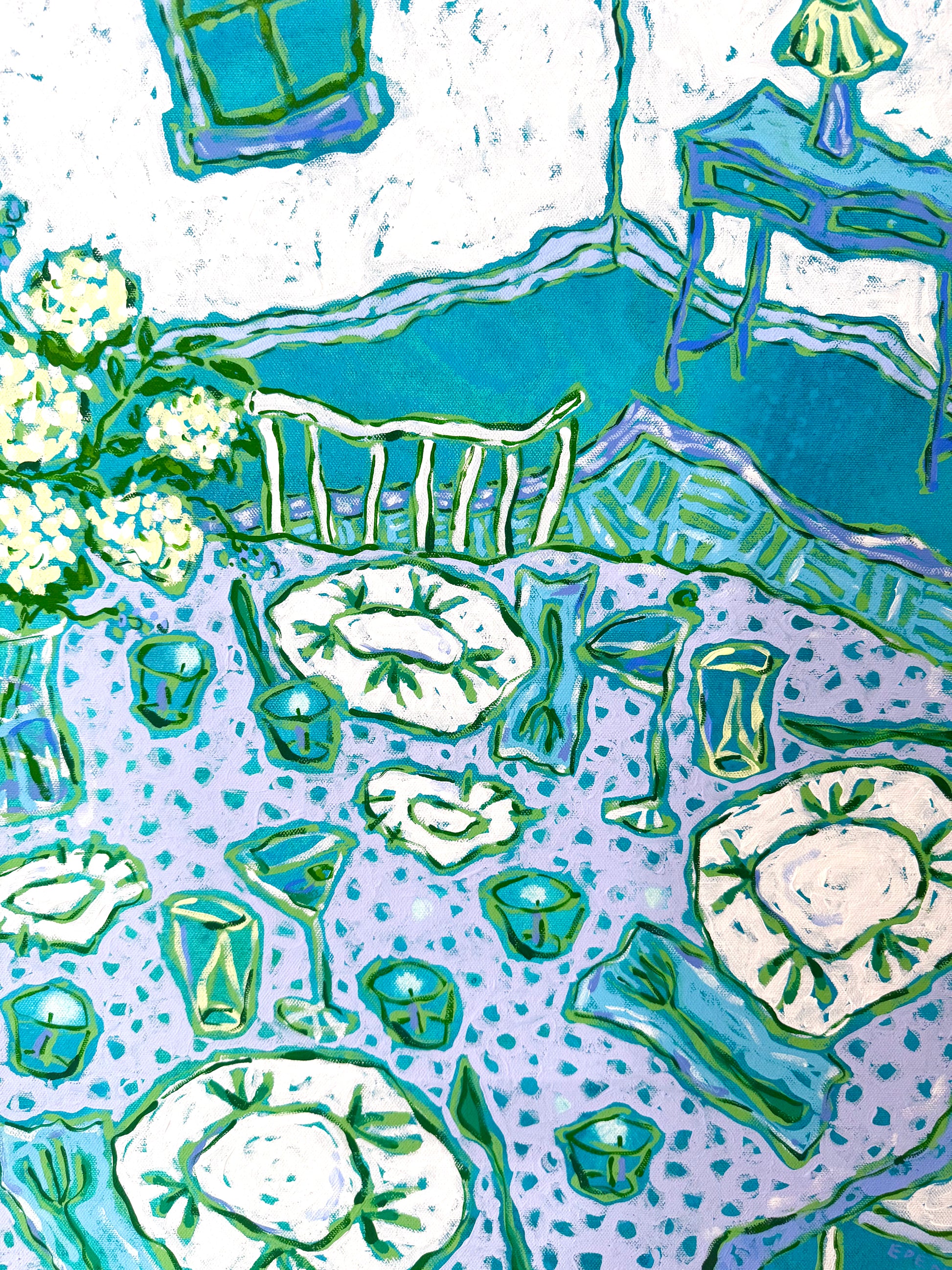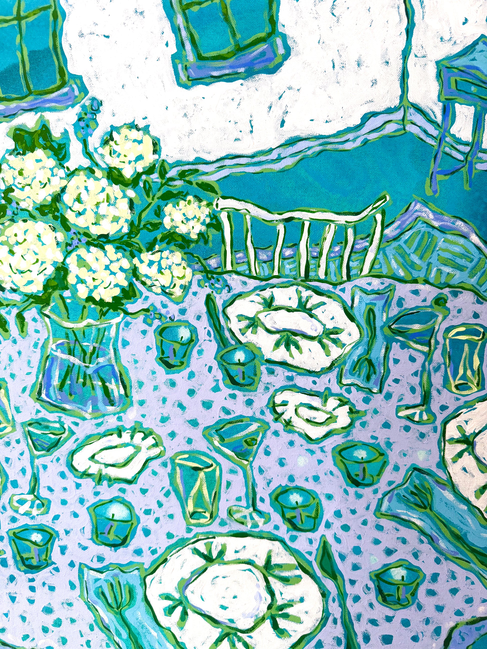 Eden resides in Oxford, Mississippi with her very loving and very tall husband and two precious sons. She paints from her aqua filled home studio there.