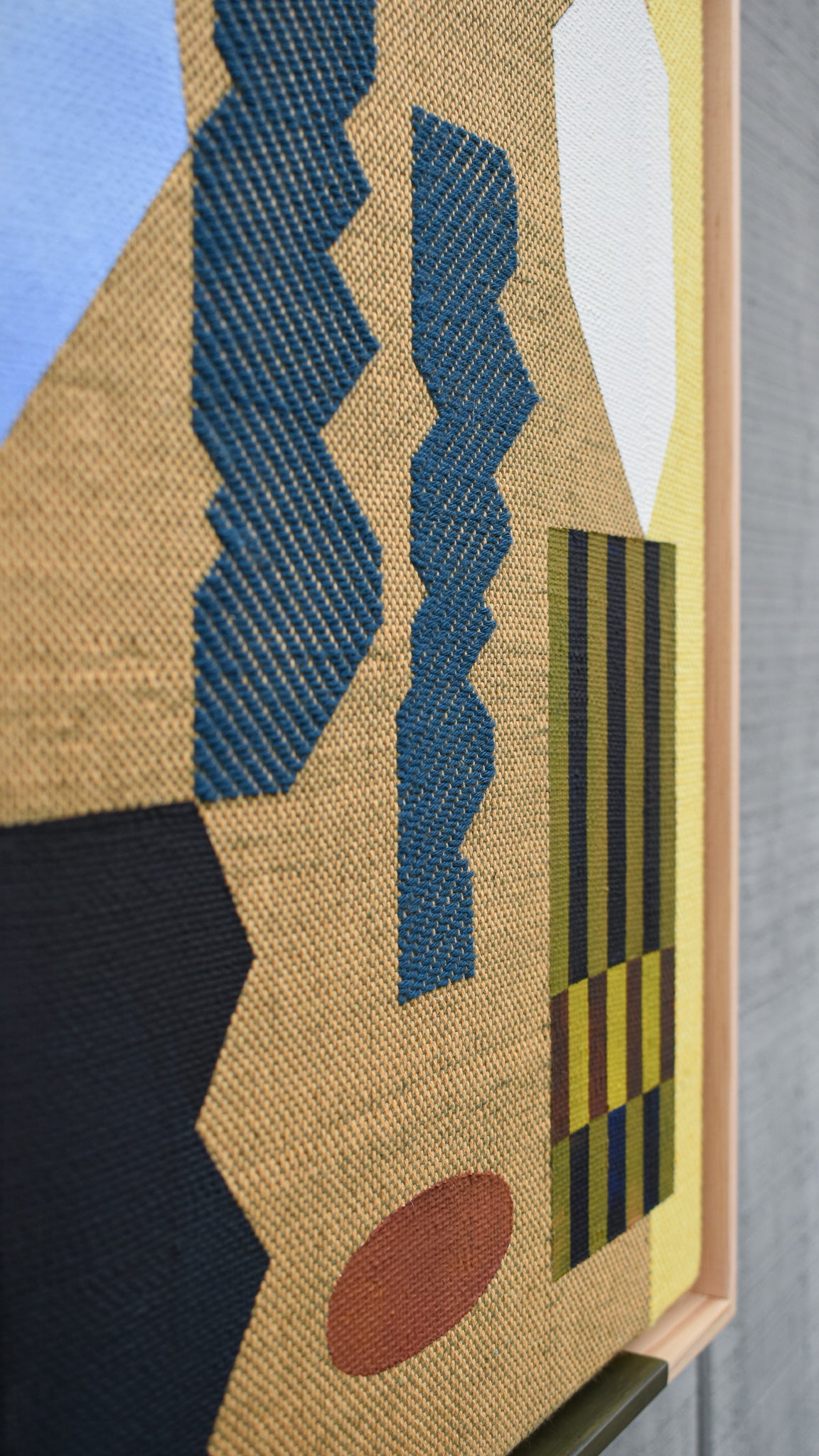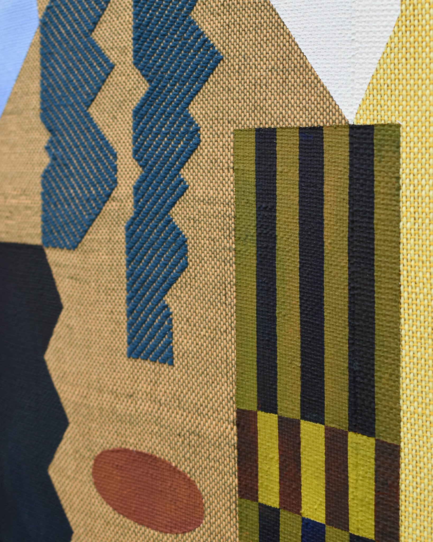Through the combination of handwoven textiles and paint, Sarah Sullivan Sherrod plays with the balance of textures, the conversations between colors, and the connections made by shapes.