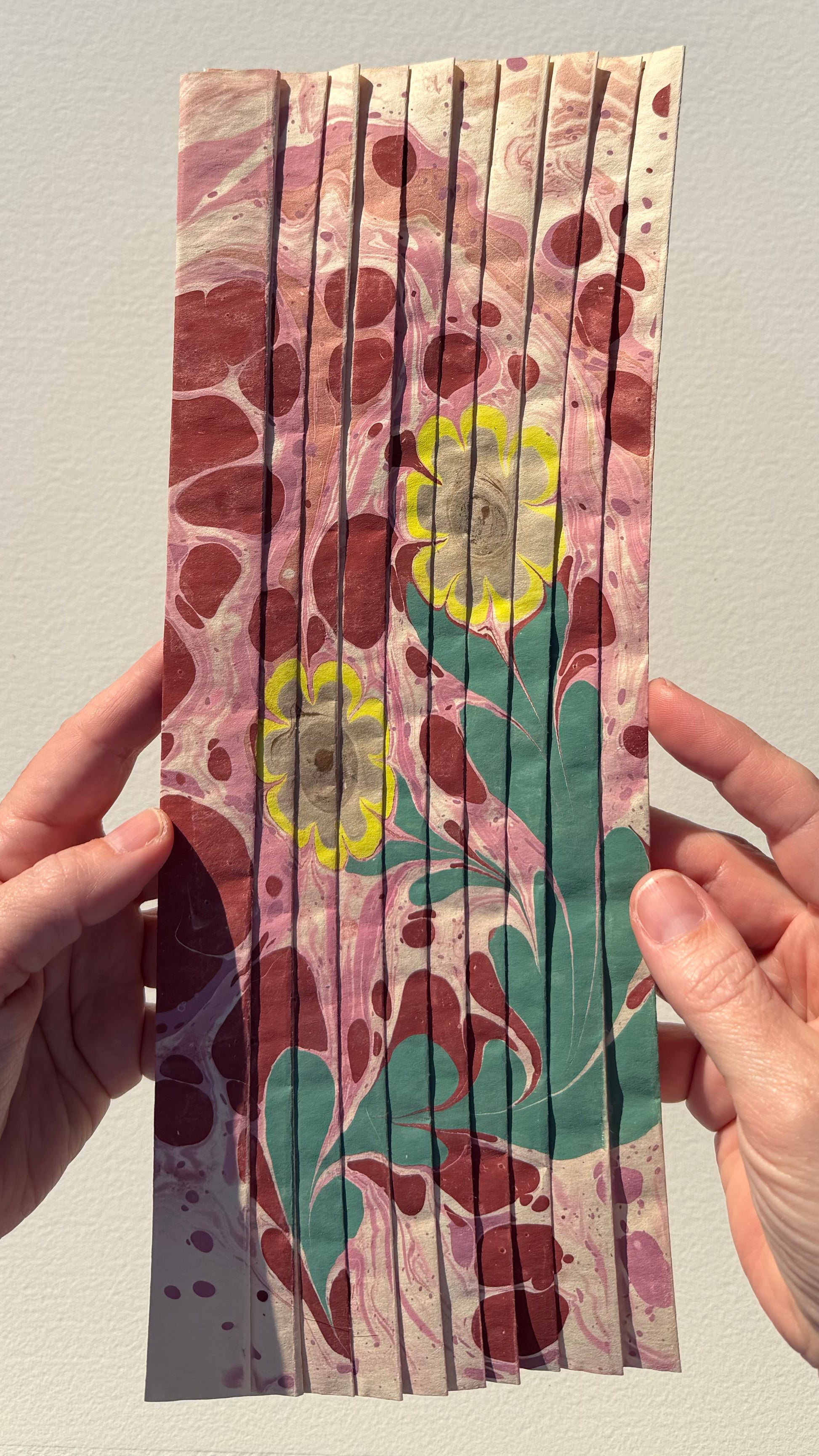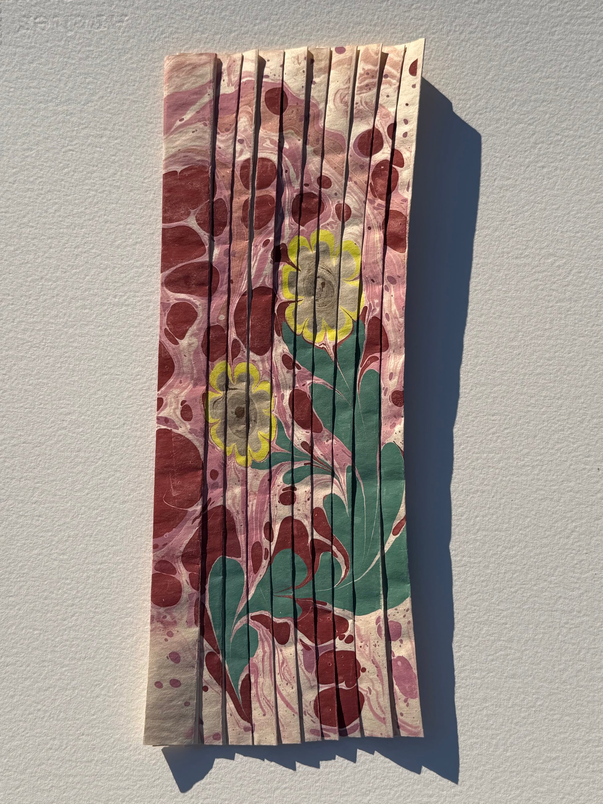 Marbling on pleated newsprint paper