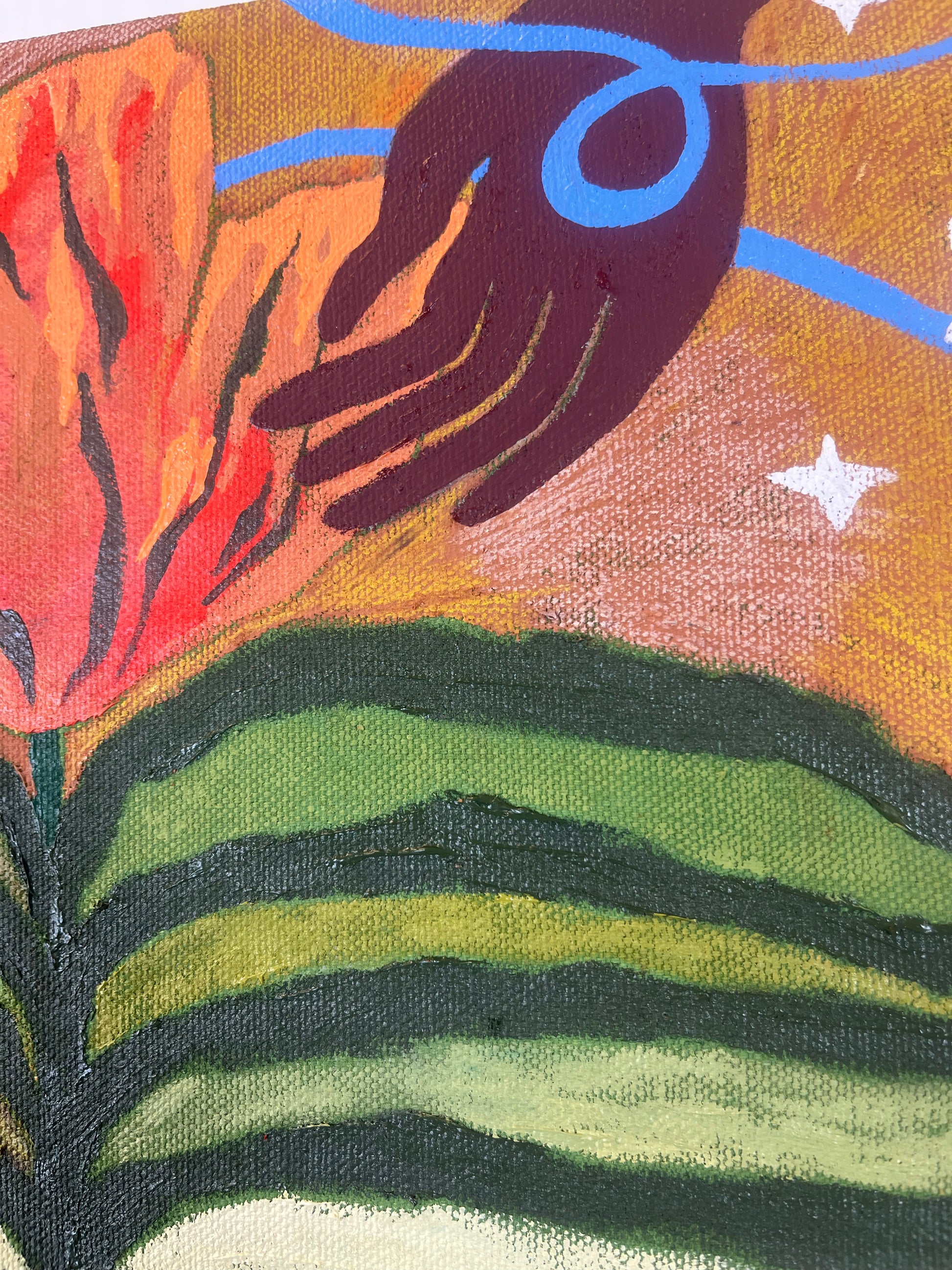 She creates imaginative paintings, murals, and art objects to infuse life with beauty, intention, and a deepened, hopeful connection to the natural world.