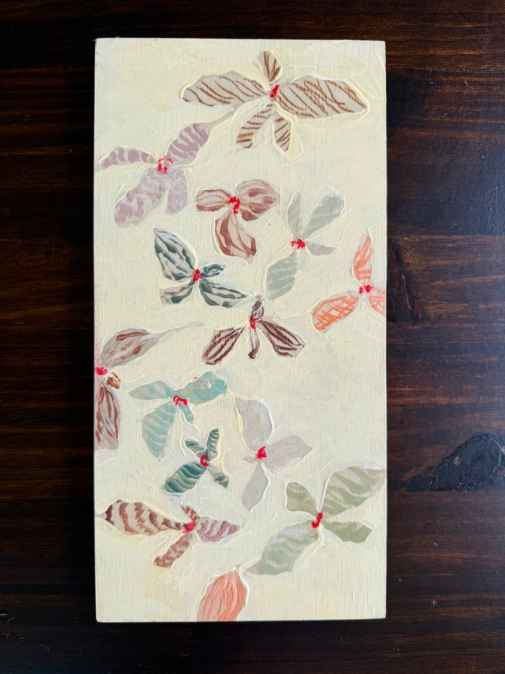 As her experience of time in motherhood shifts, so does the work. From more rigid grids of routine found in early motherhood to more fluid silhouettes of palmy irises as she returns to her own sort of pattern again. Marks become less sharp & quick. They start to draw out her own identity as time becomes hers again. With her background & formal training in drawing, Shelby uses mark making to emphasize that precise moment as if they are timestamps. Racing marks with time all while doing it with a nurturing quality of practice, her work expands on the essence of what time feels like in this very moment of motherhood.