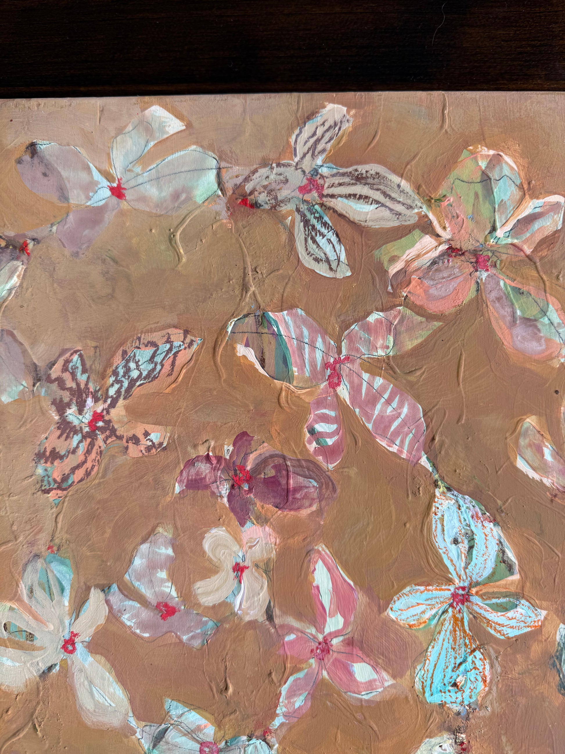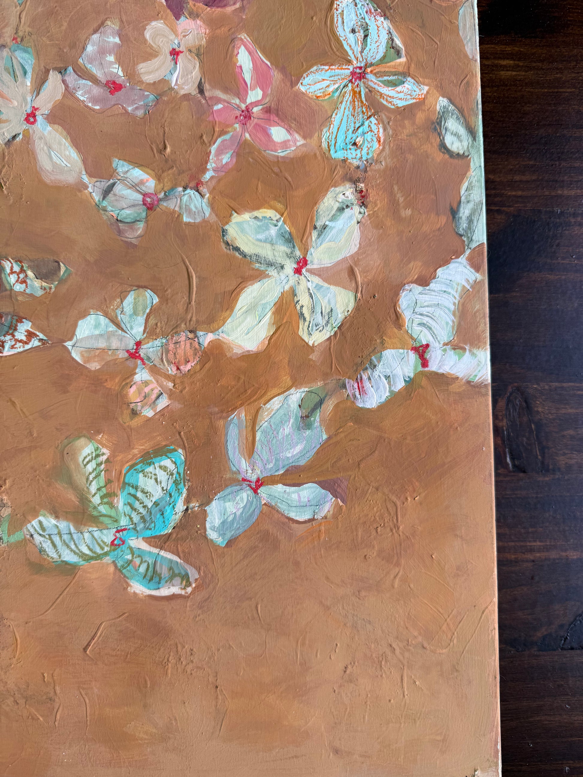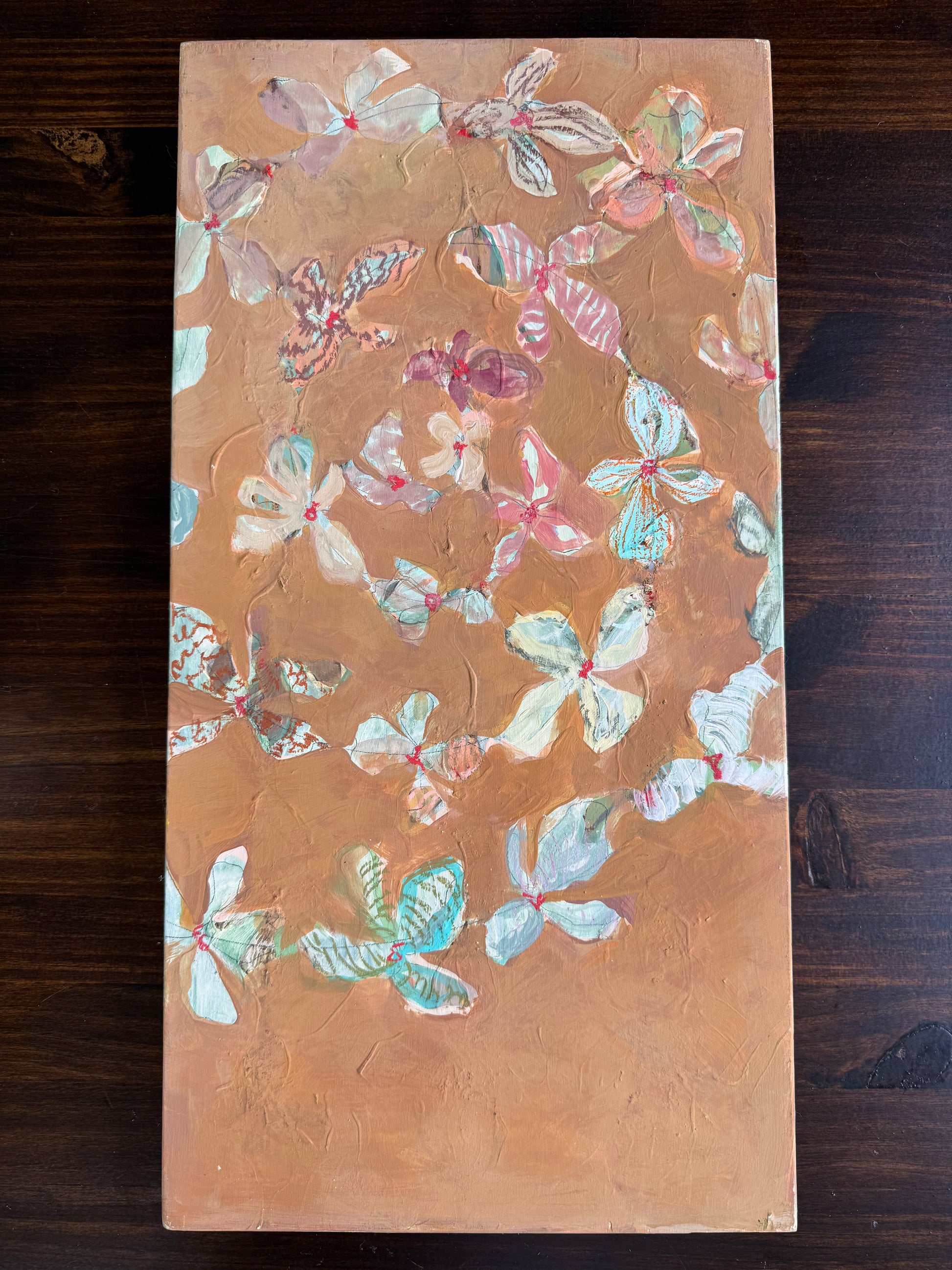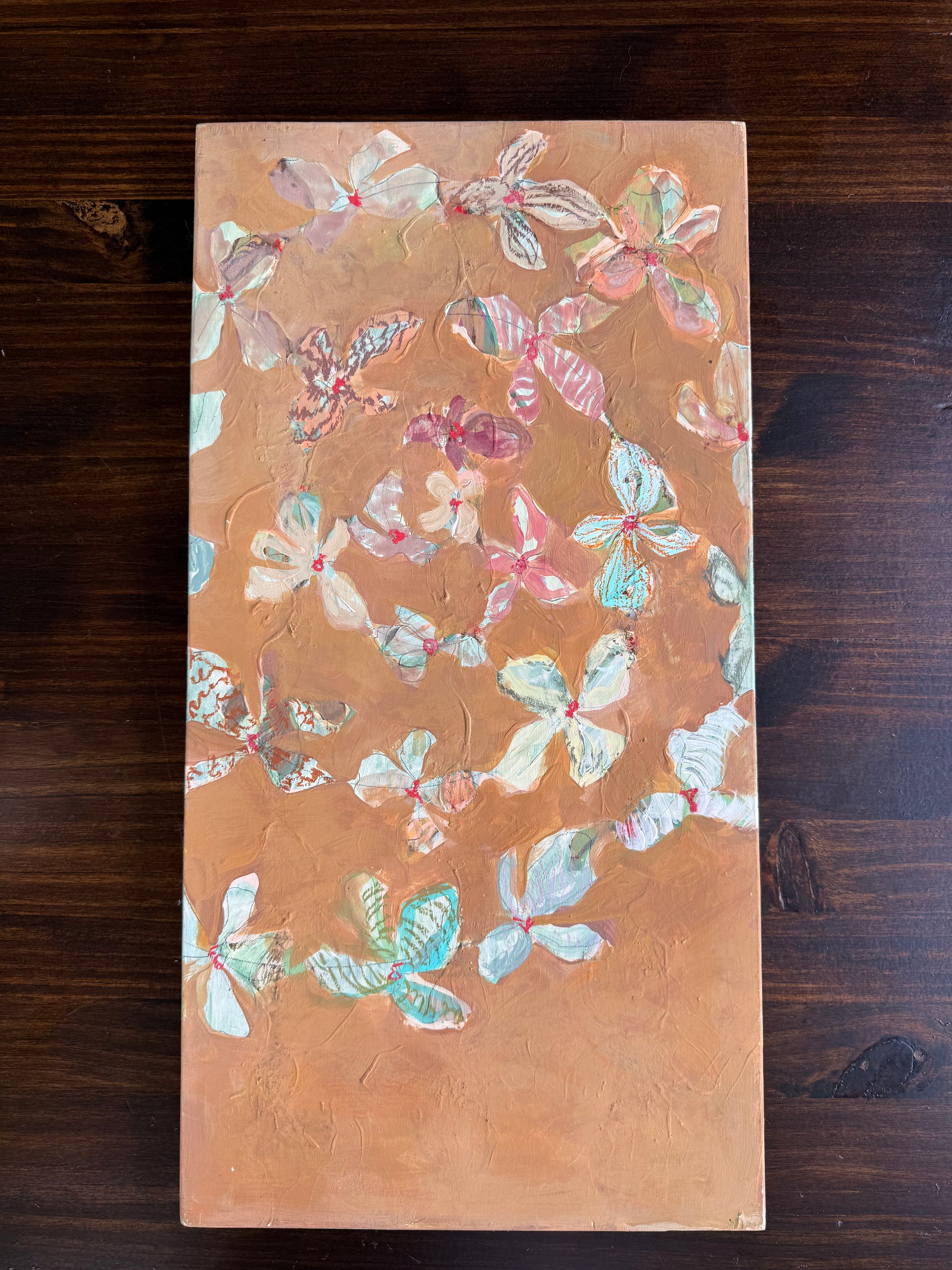 Shelby is a mixed media artist focusing her work on time, specifically the time within motherhood. Collaborating & competing soft, washed colors with spunky, spicy marks, she showcases how the balance of the two creates an authentic abstraction of life balancing being a mother. Repetition & routine find themselves within the process & throughout the compositions.