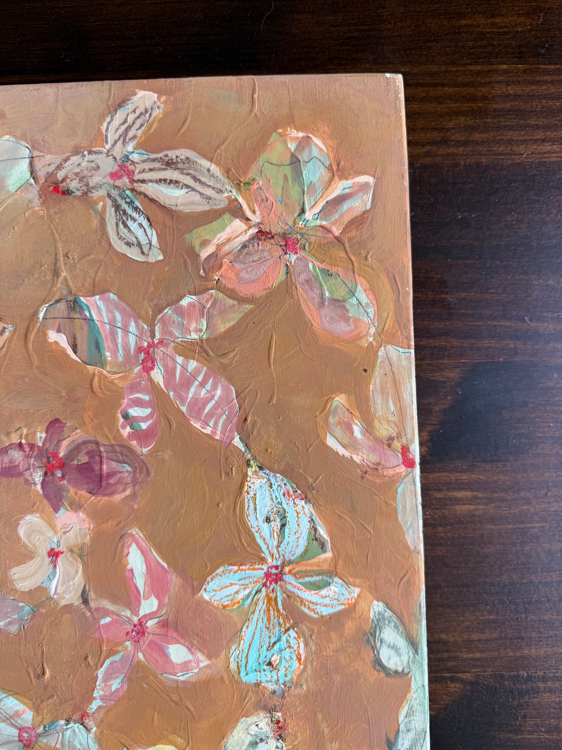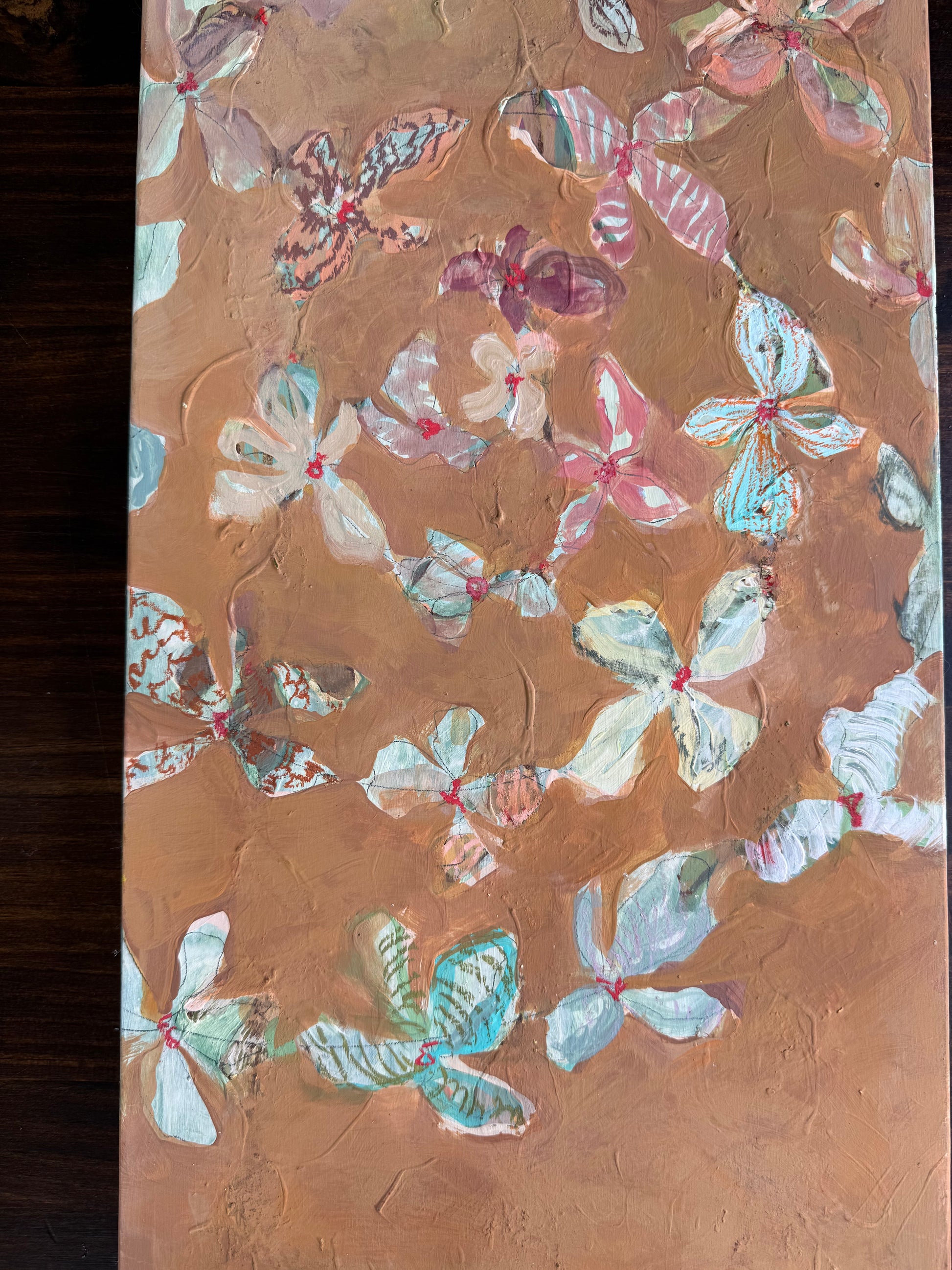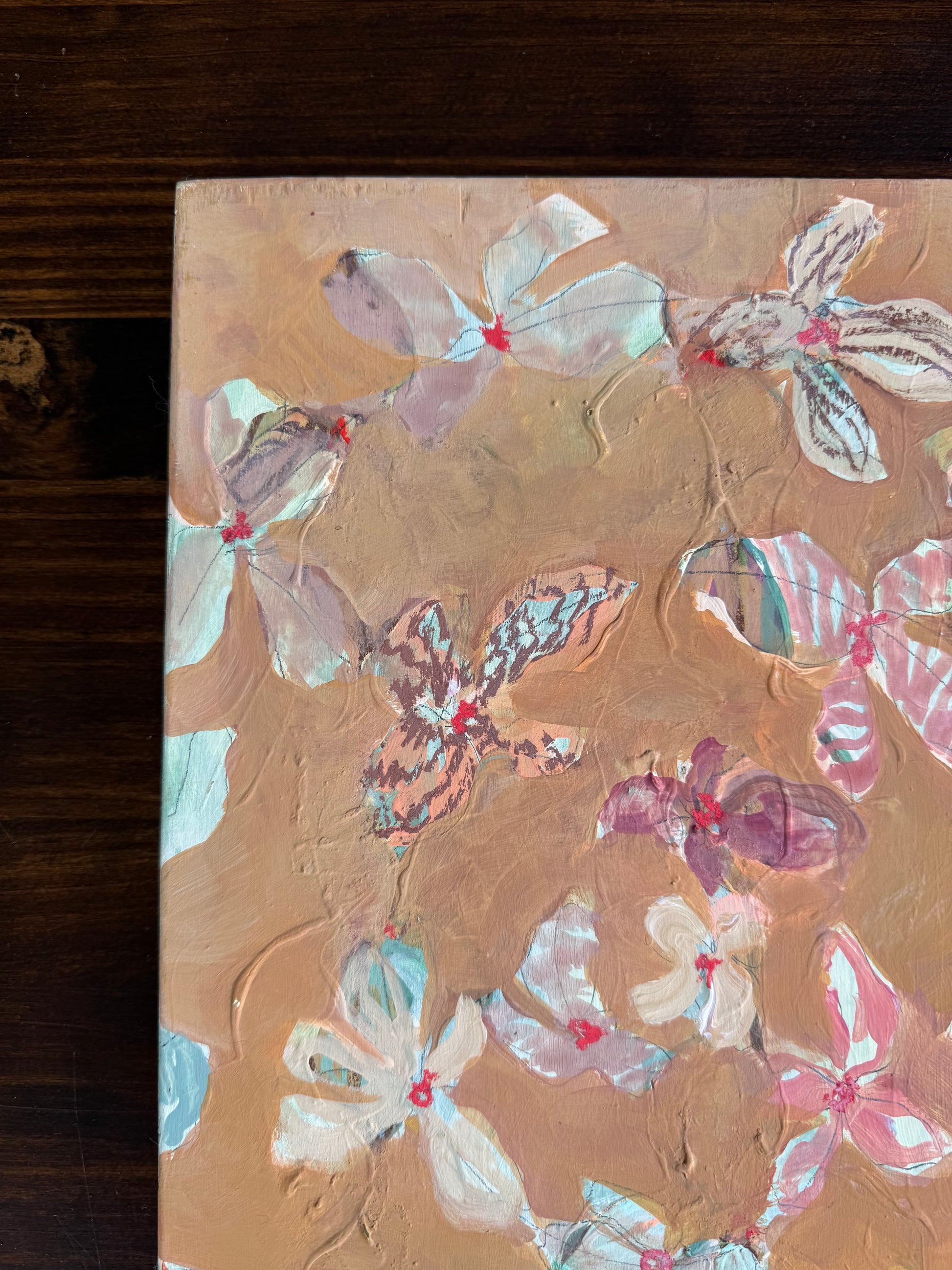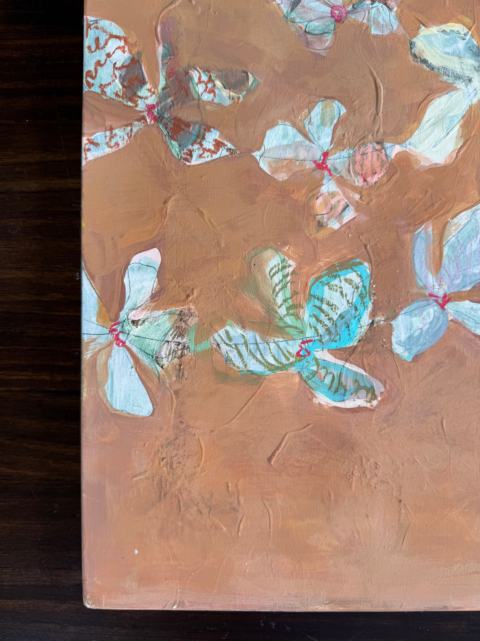 Shelby is a mixed media artist focusing her work on time, specifically the time within motherhood. Collaborating & competing soft, washed colors with spunky, spicy marks, she showcases how the balance of the two creates an authentic abstraction of life balancing being a mother. Repetition & routine find themselves within the process & throughout the compositions.