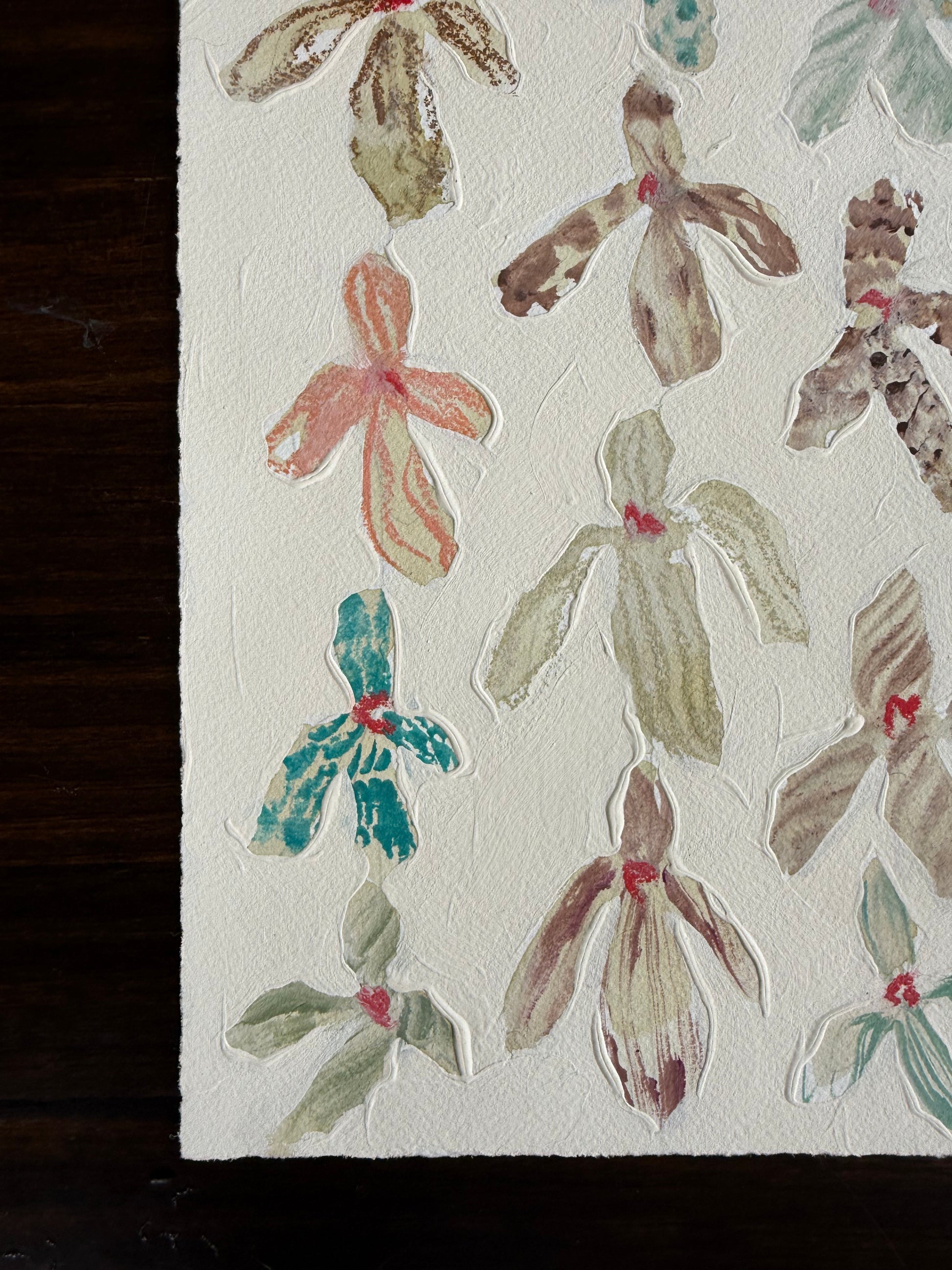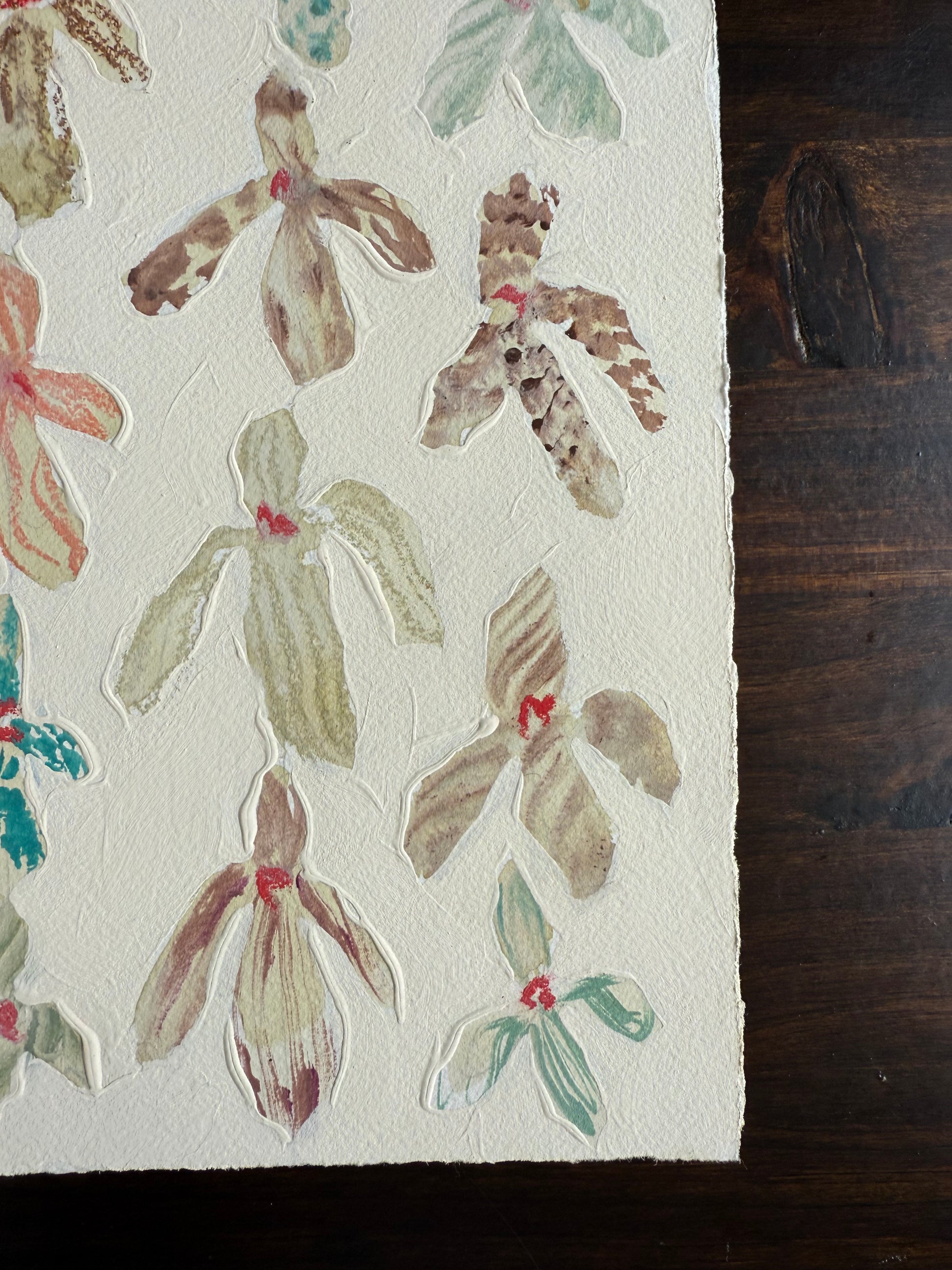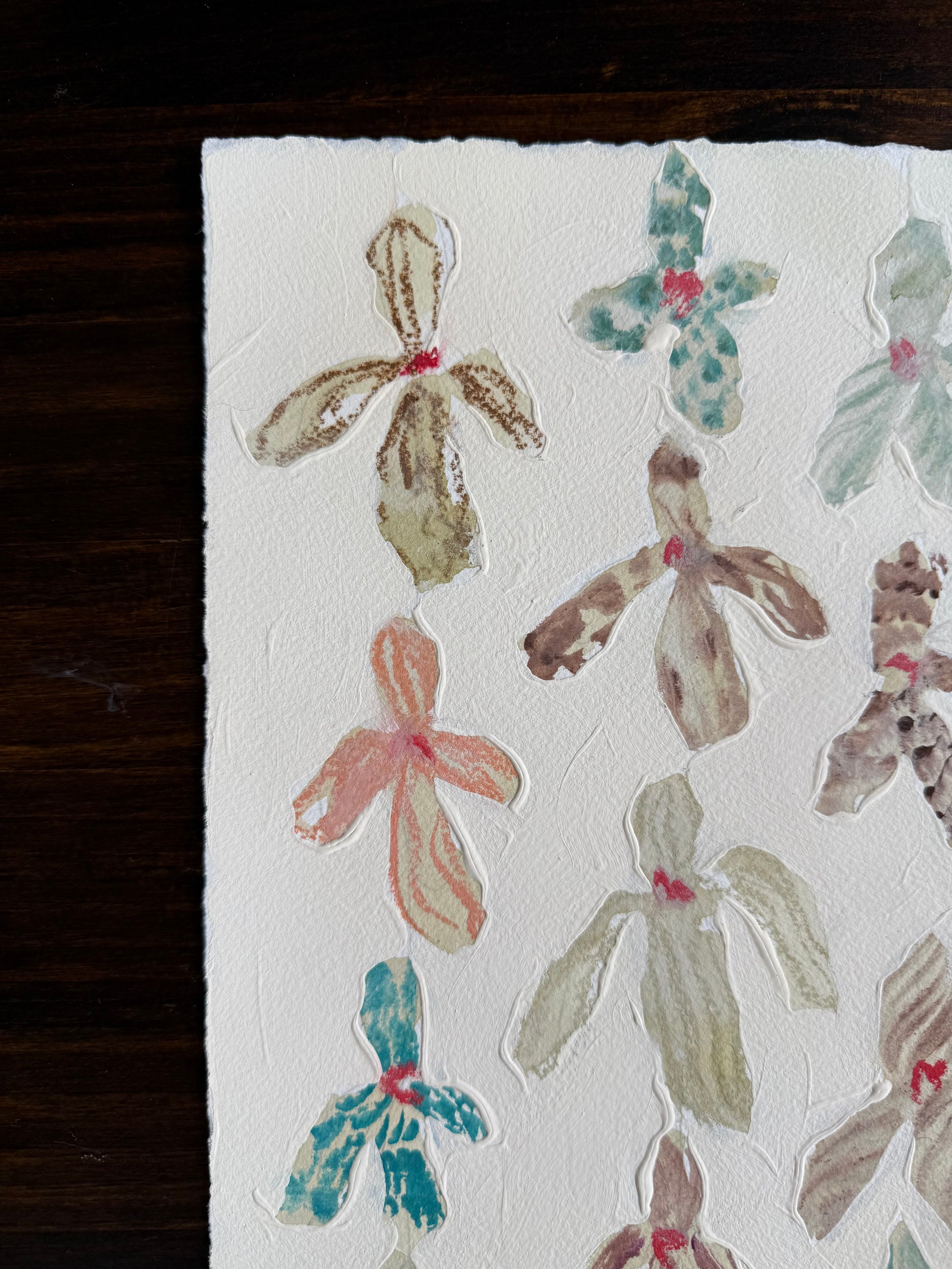 As her experience of time in motherhood shifts, so does the work. From more rigid grids of routine found in early motherhood to more fluid silhouettes of palmy irises as she returns to her own sort of pattern again. Marks become less sharp & quick. They start to draw out her own identity as time becomes hers again. With her background & formal training in drawing, Shelby uses mark making to emphasize that precise moment as if they are timestamps. Racing marks with time all while doing it with a nurturing quality of practice, her work expands on the essence of what time feels like in this very moment of motherhood.