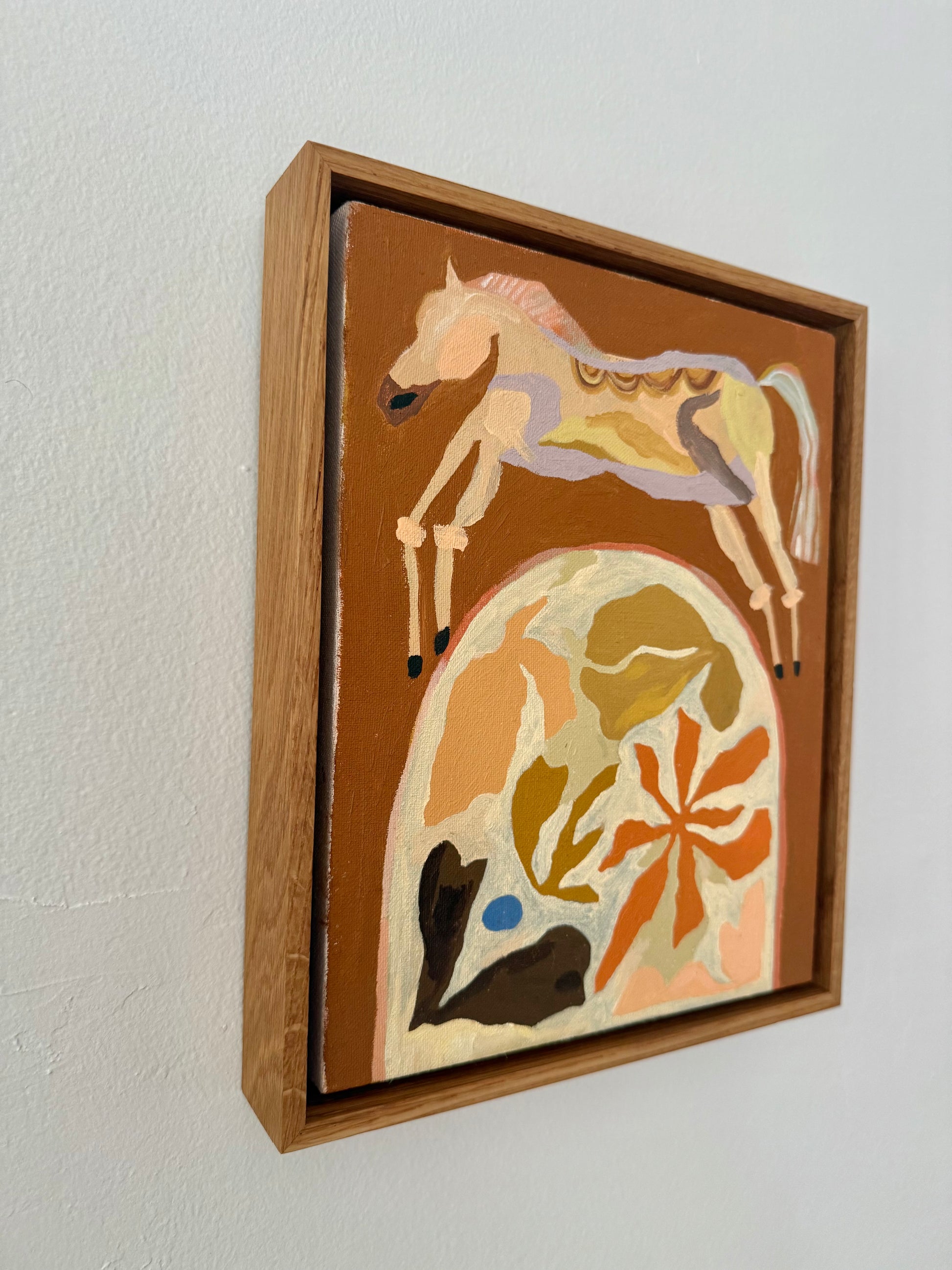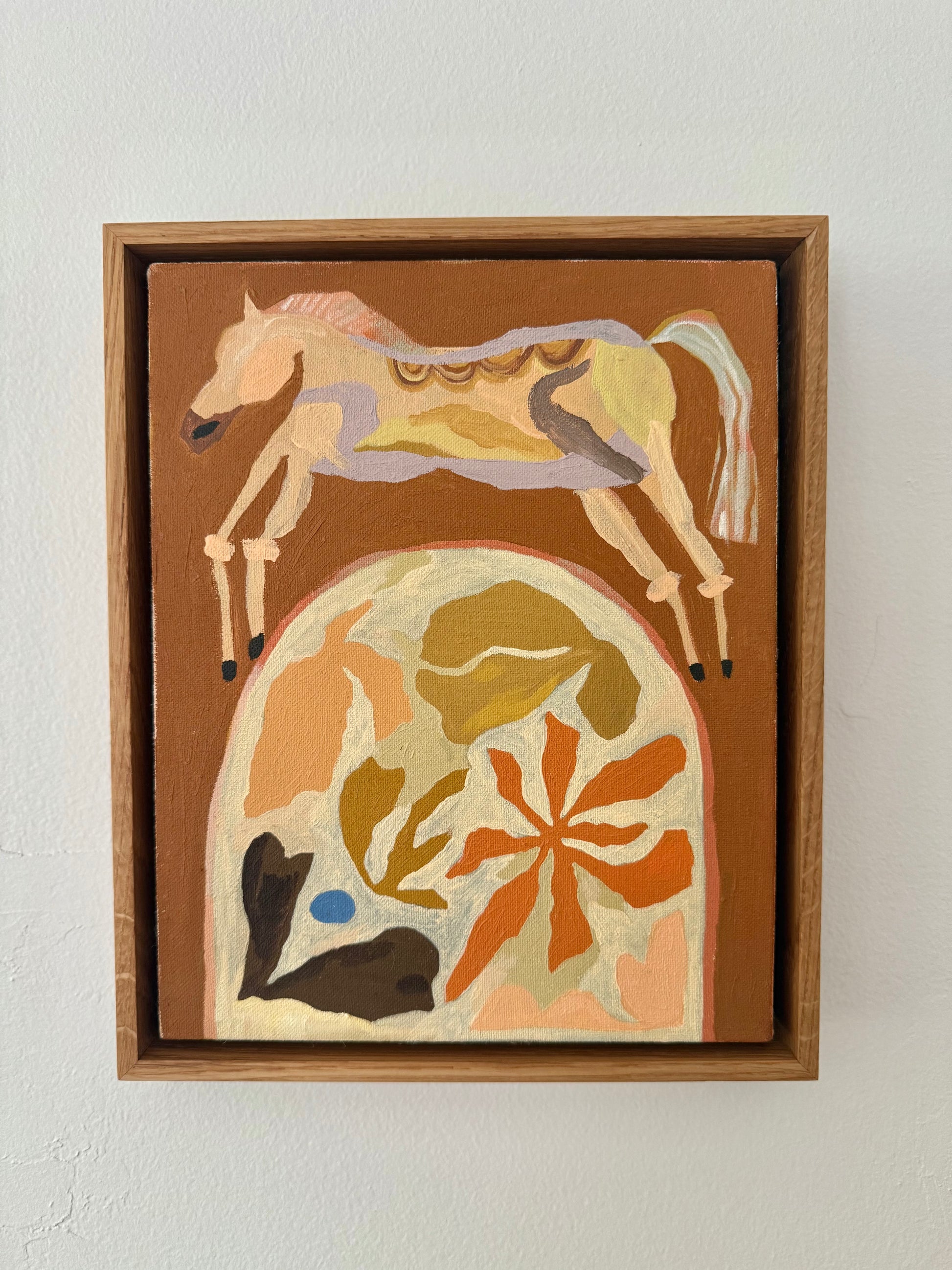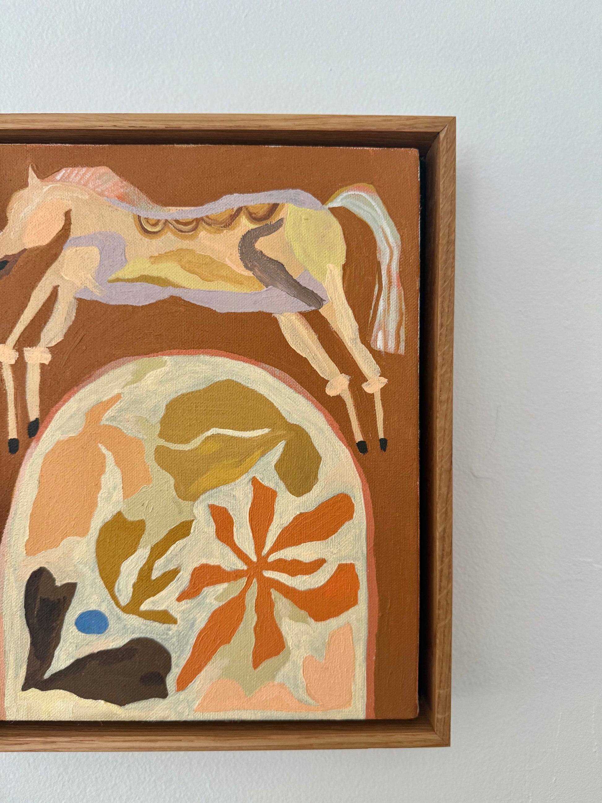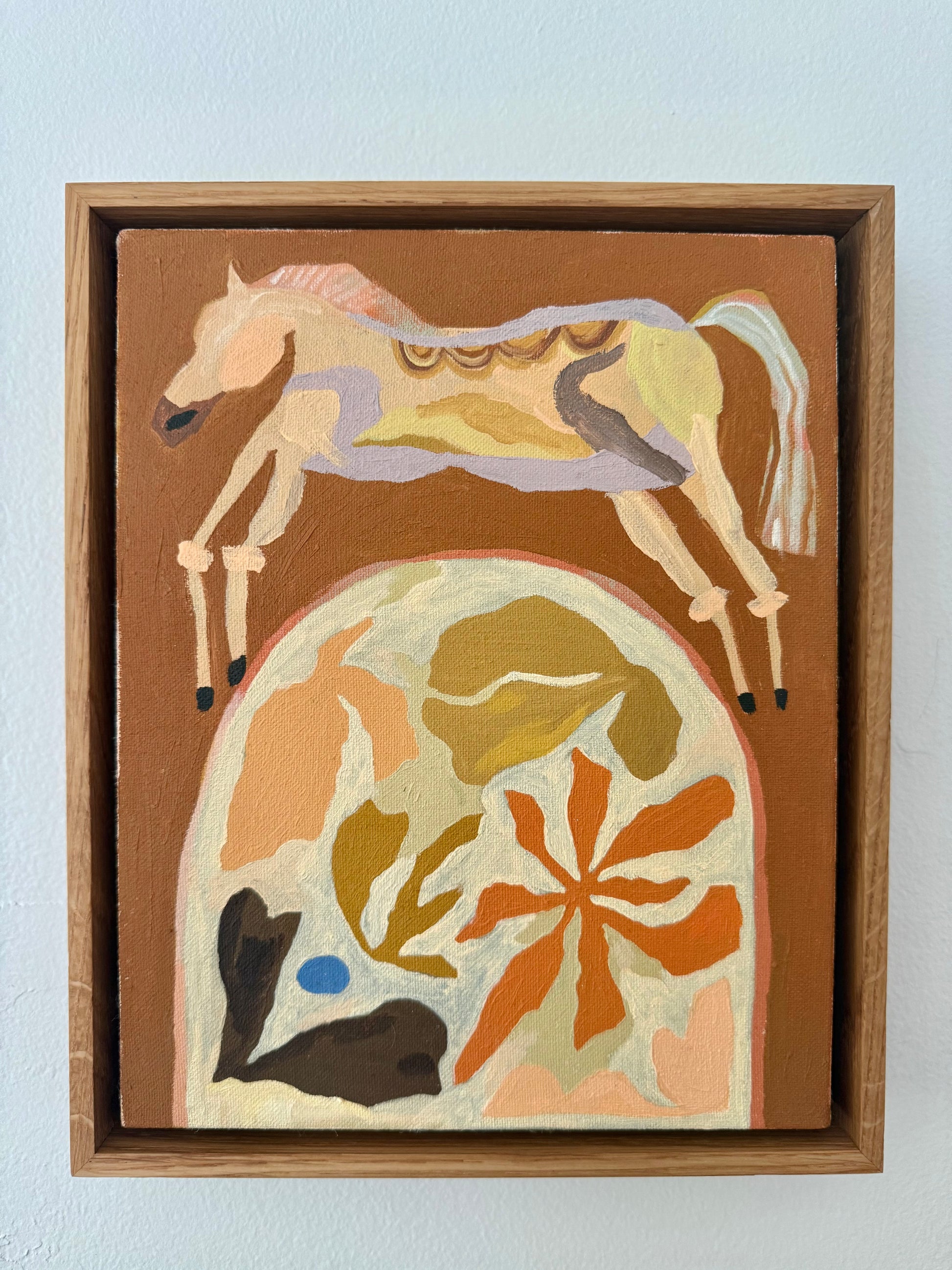 Oil, pastel, and graphite on canvas in custom white oak frame