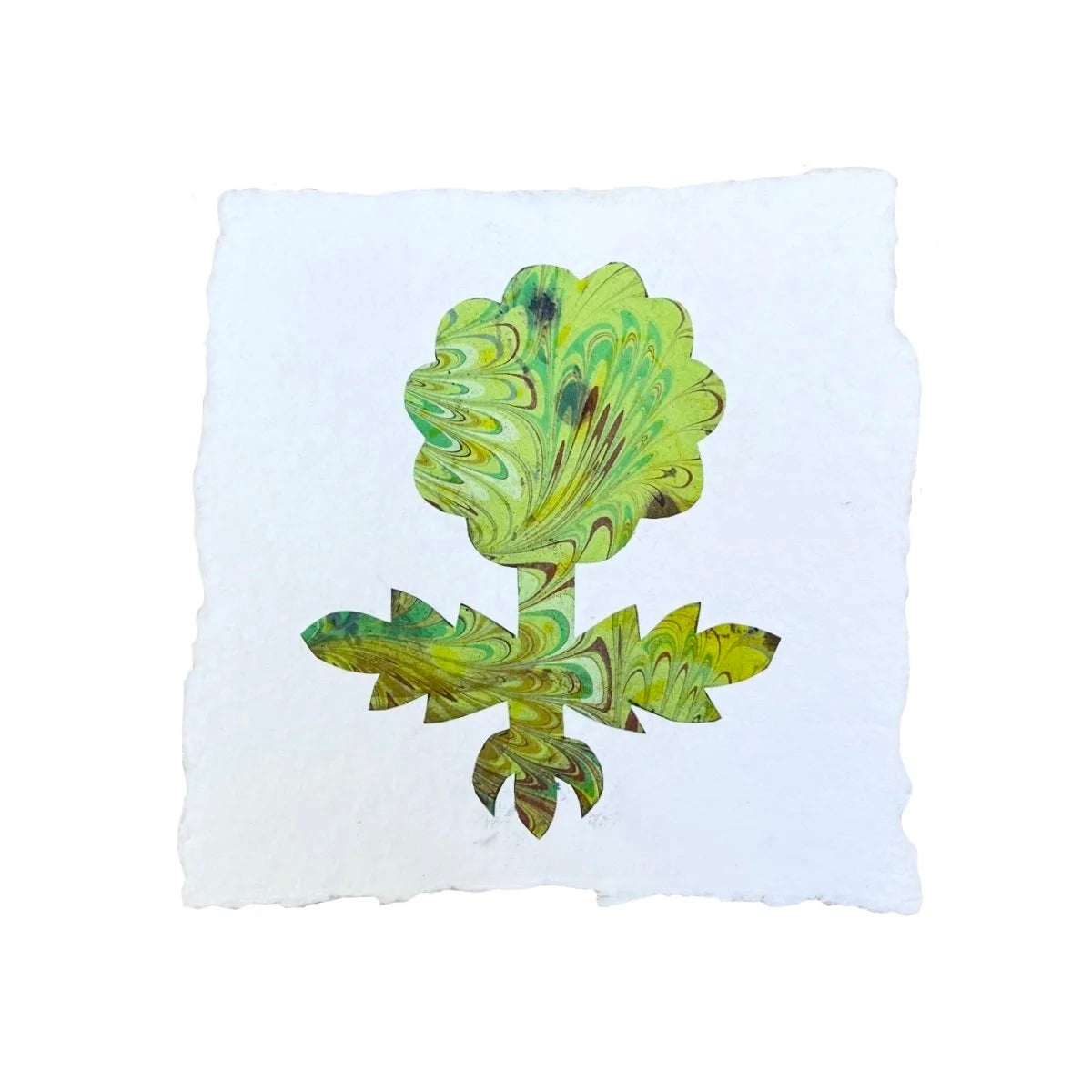 Florentine marbled paper, thread, cotton rag paper collage
