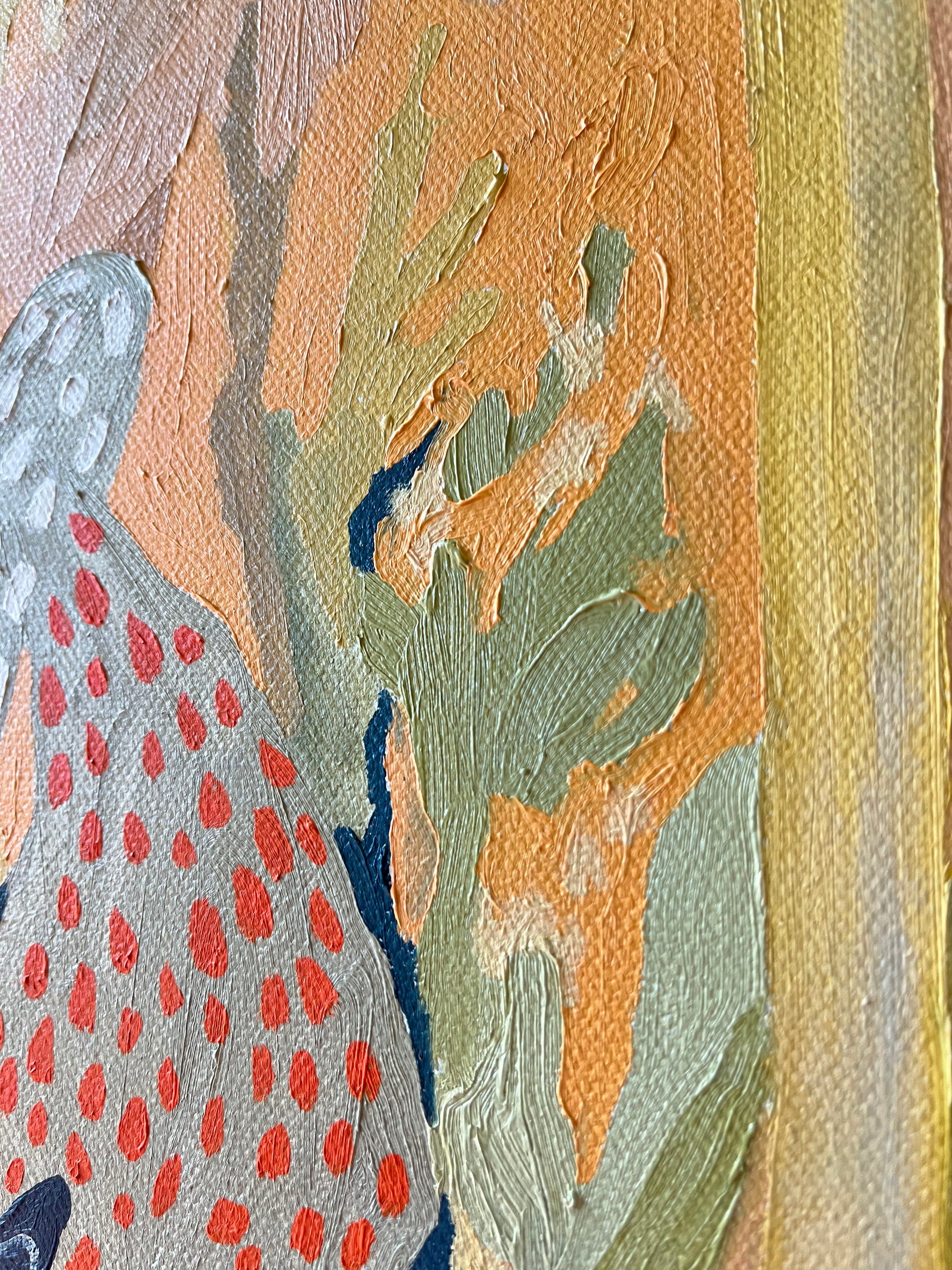 She creates imaginative paintings, murals, and art objects to infuse life with beauty, intention, and a deepened, hopeful connection to the natural world.