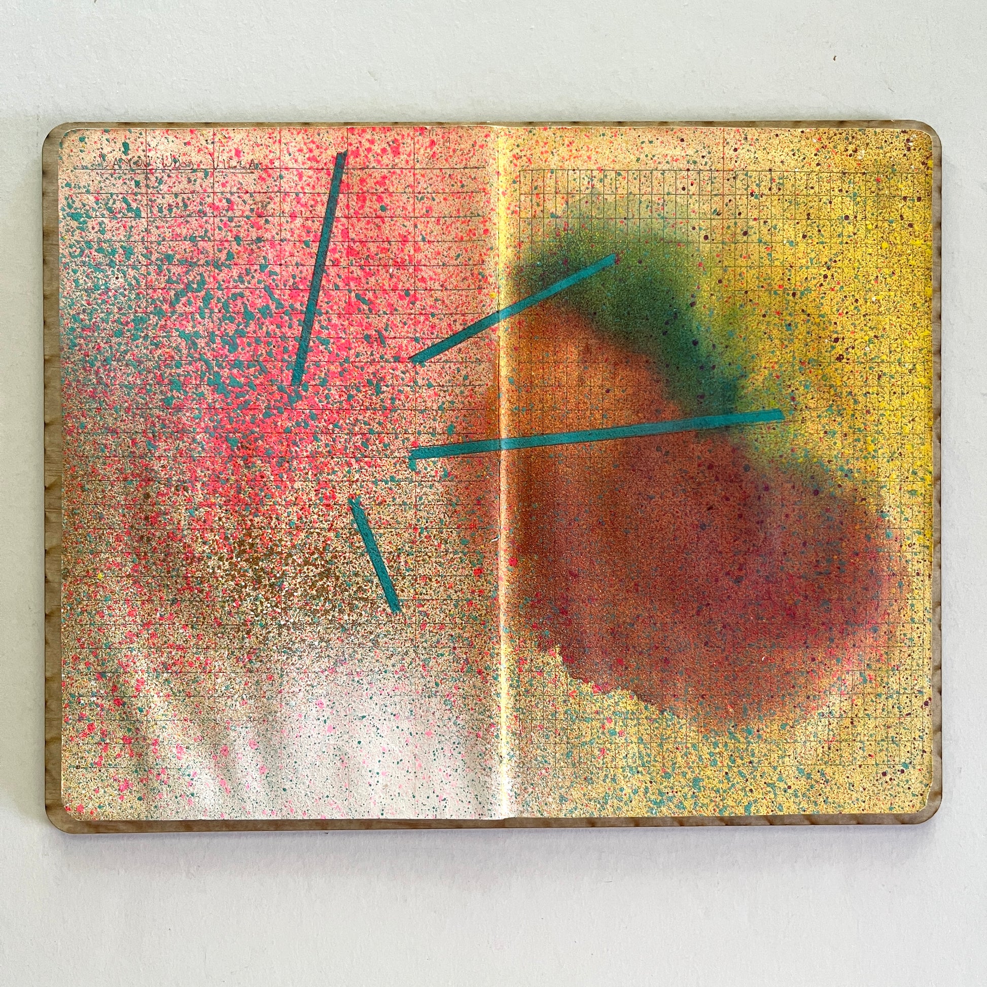 Ink and acrylic on used field book paper on wood panel