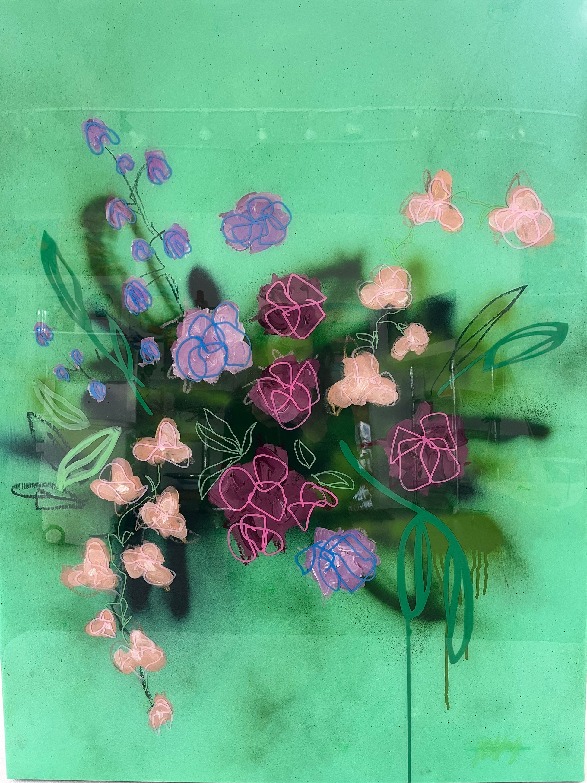 Using spray paint and resin as her primary mediums, the result is a highly seductive, incredibly luxe, deeply contemplative work that evolves the more you look at it. With up to 15 layers in each piece, the depth and dimension of the work mimics that of the many facets of our lives. Beautiful, dark, moody, bright, electric, messy, and vibrant - all represented throughout her work.