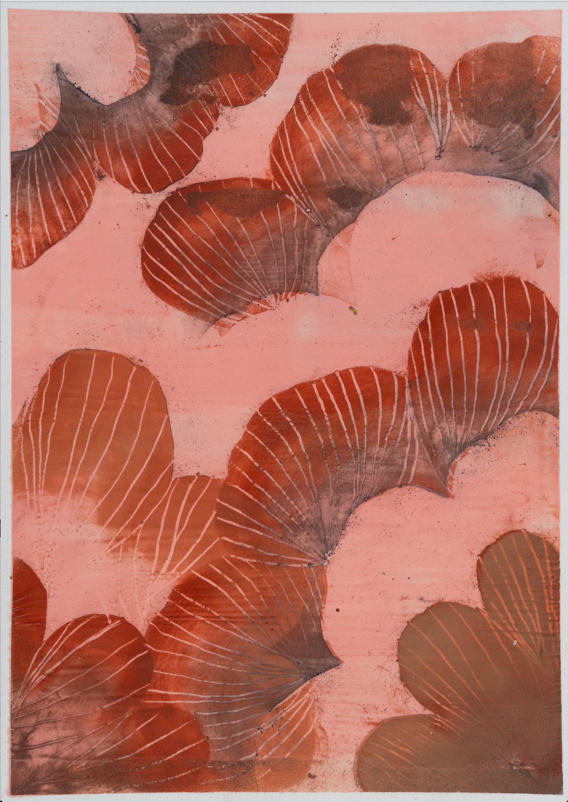 Liz elevates the mundane, mimicking the way we bring significance to loss with keepsakes and memorials. Her work evokes a sense of nostalgia and exposes the sentimentality in memory. Her color choices are tied to the decor and design trends of decades past that have become kitschy artifacts. Her use of pattern and shape reference objects that are no longer identifiable but retain familiarity. Embellishments like fringe and shiny gold finishes play into the chintzy aesthetic of souvenirs—elevating the ordinary to something celebratory.