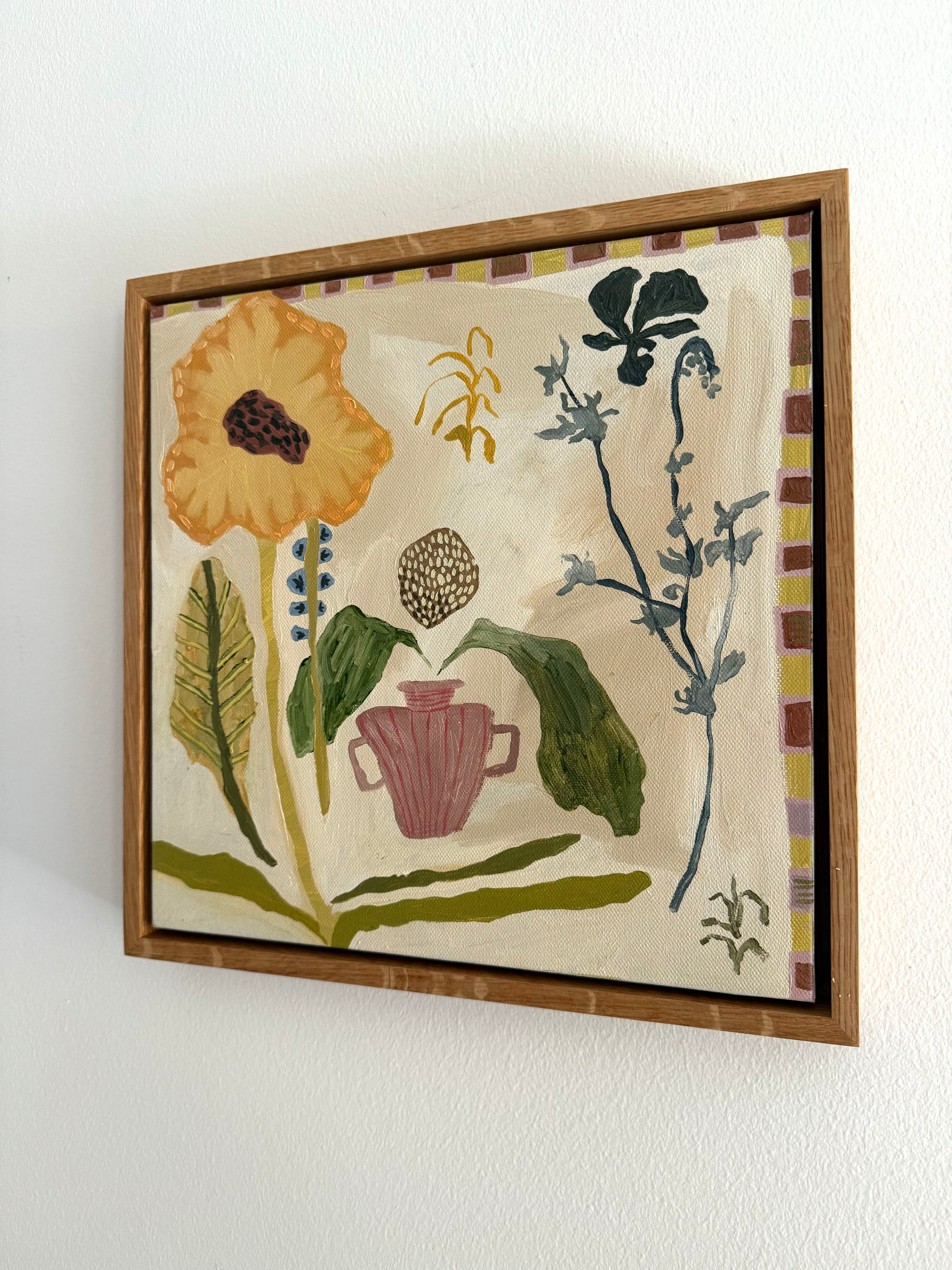 Her work reimagines common plants using whimsical colors and playful, painterly forms that speak to a communally-thriving vision of the future, beyond the shadow of the climate crisis, the two-headed snake of capitalism/colonialism, and anthropocentrism.