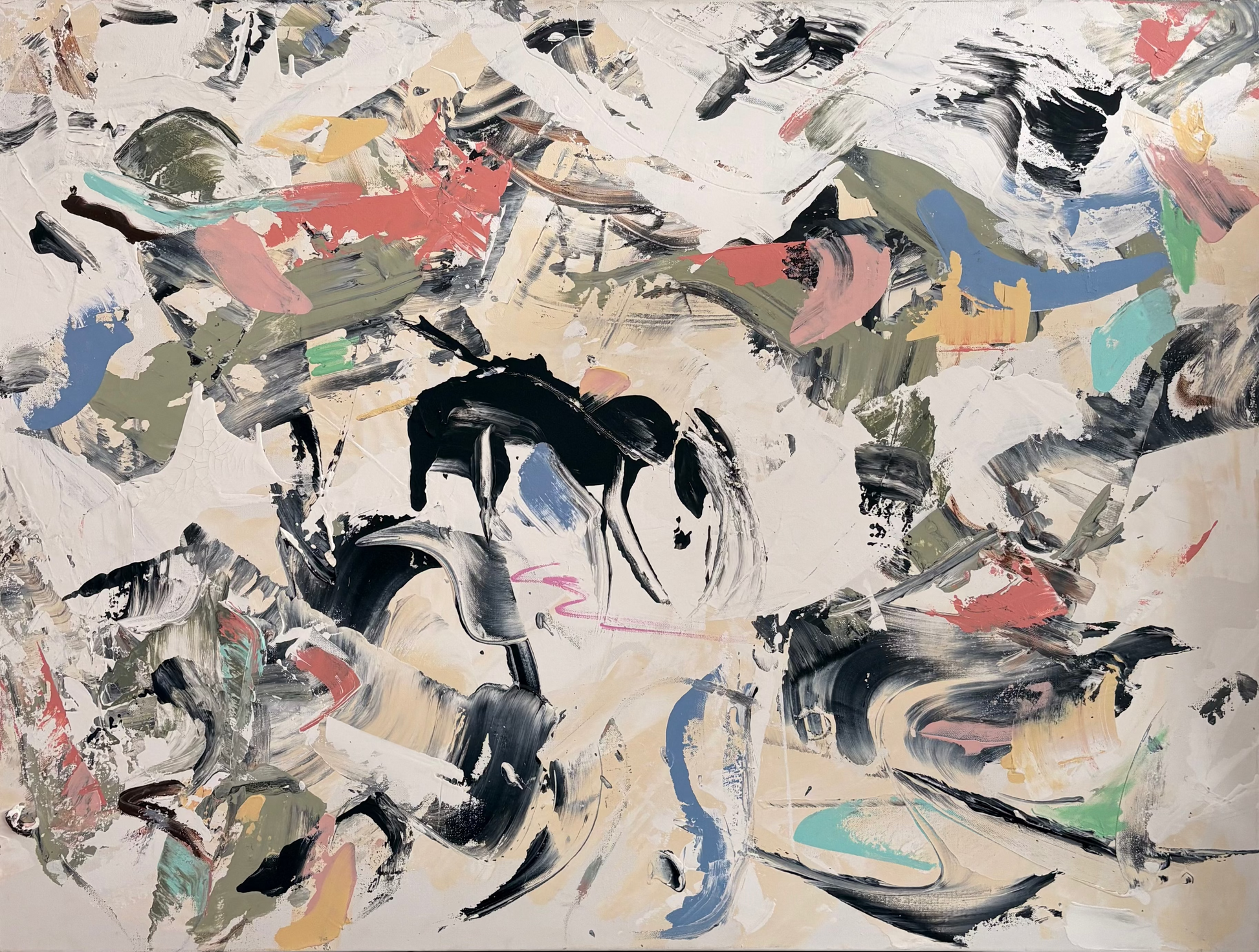 Acrylic and mixed media on primed canvas
