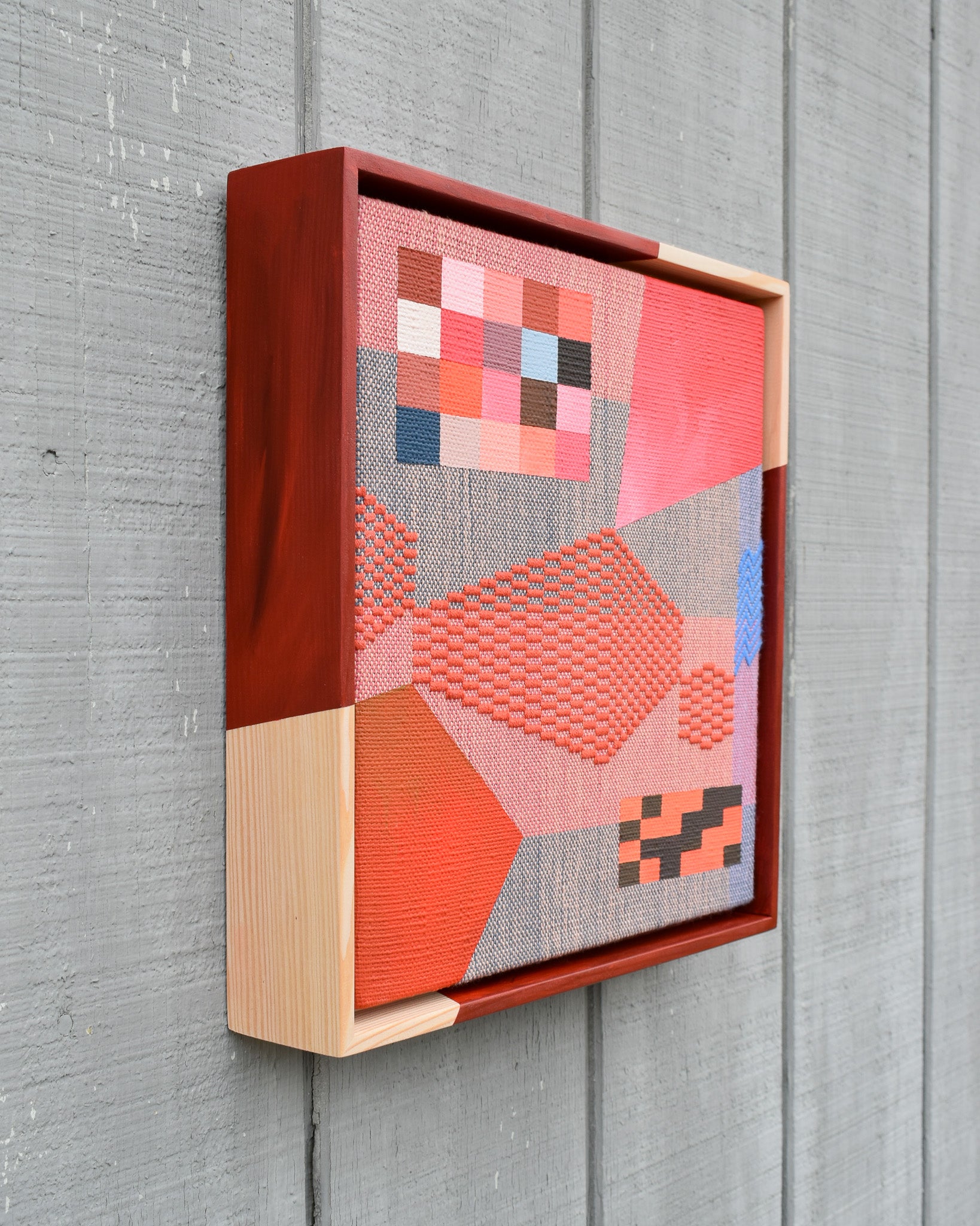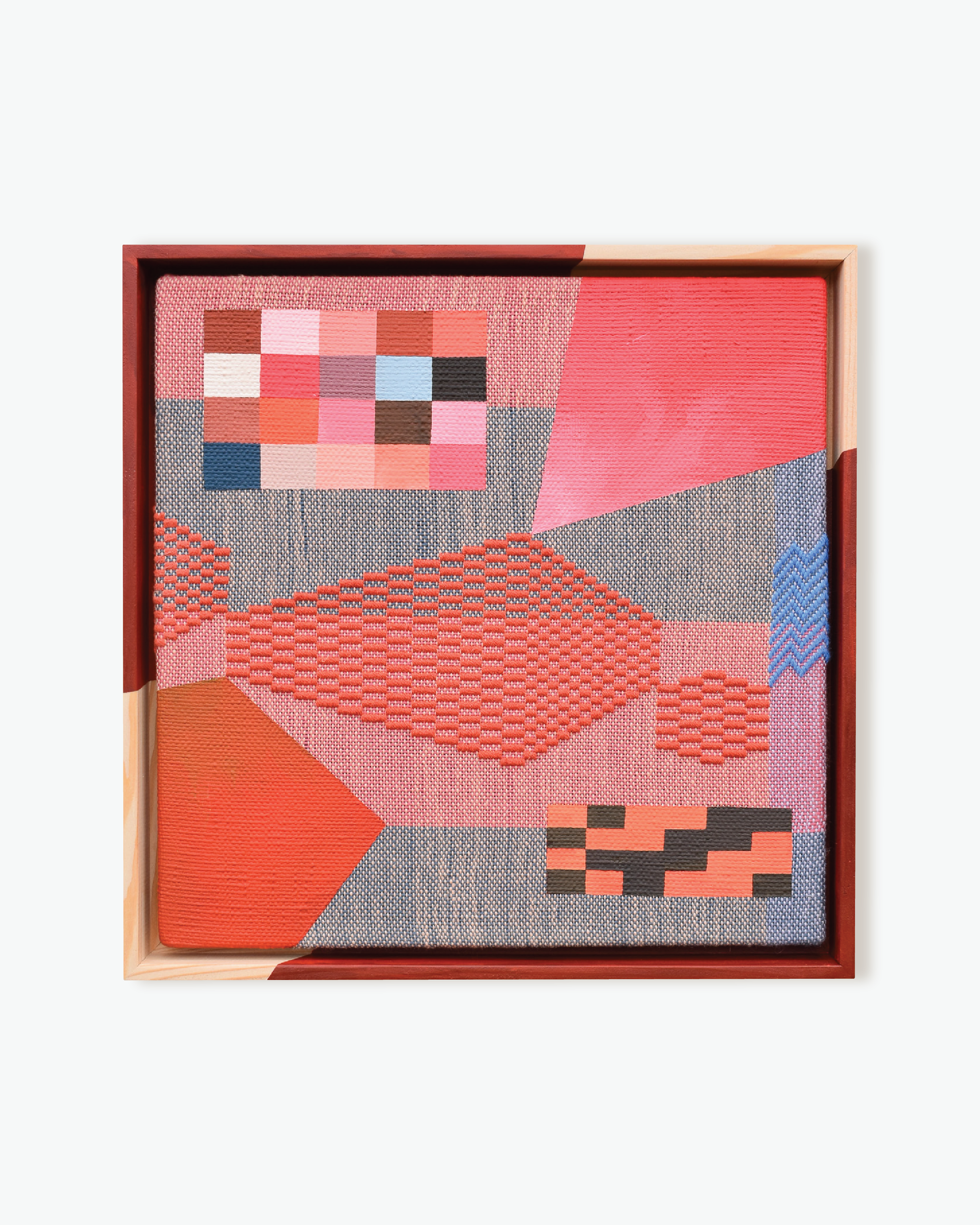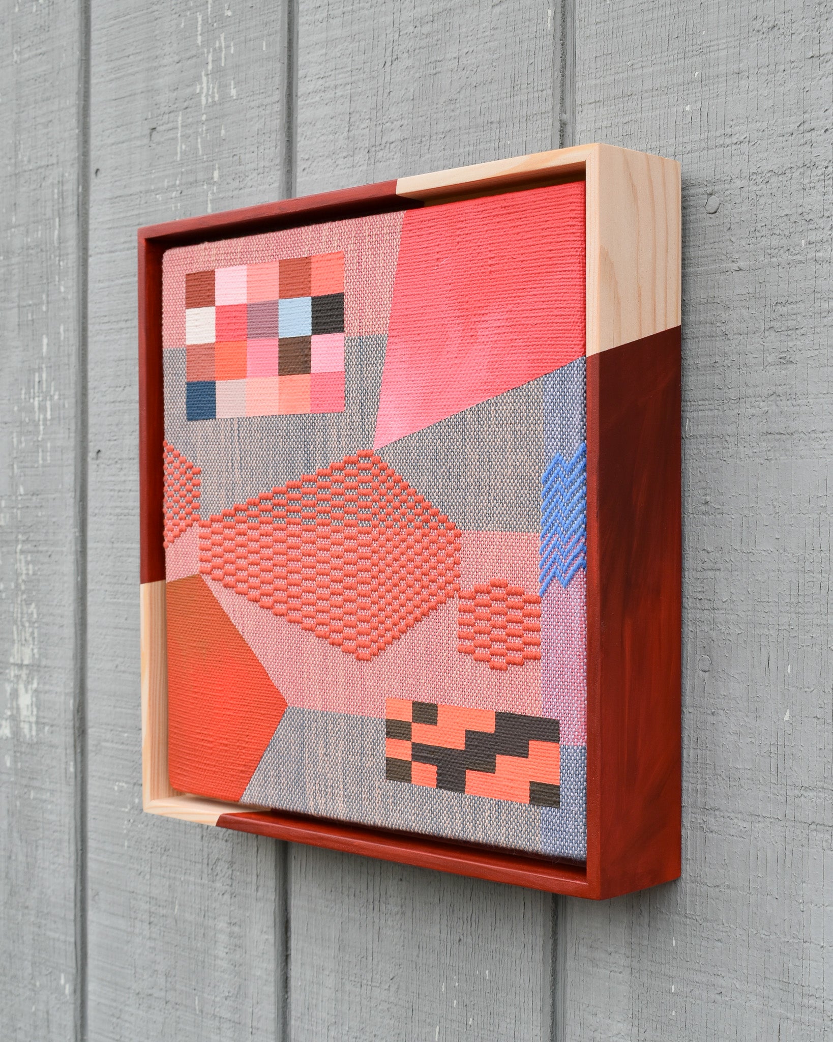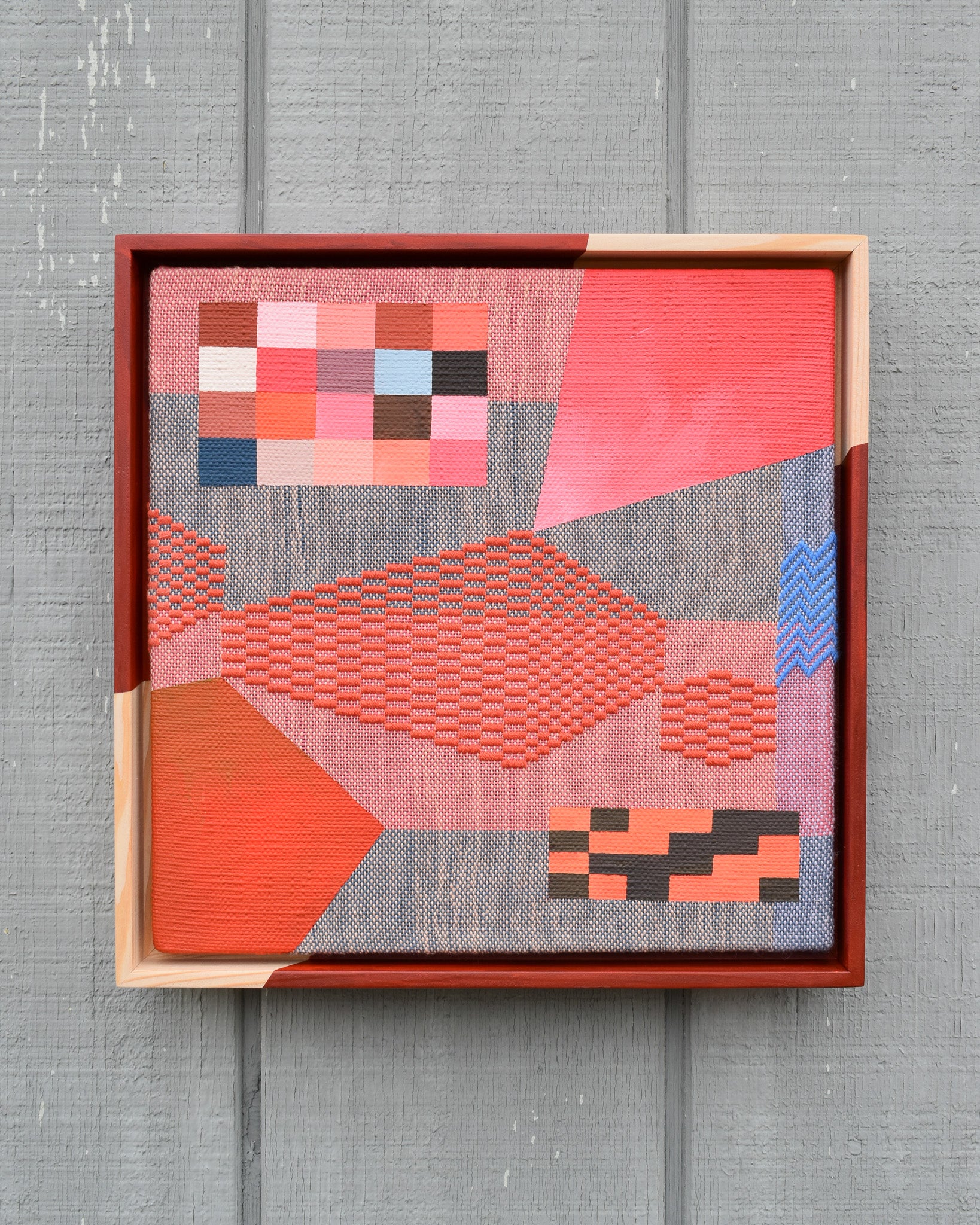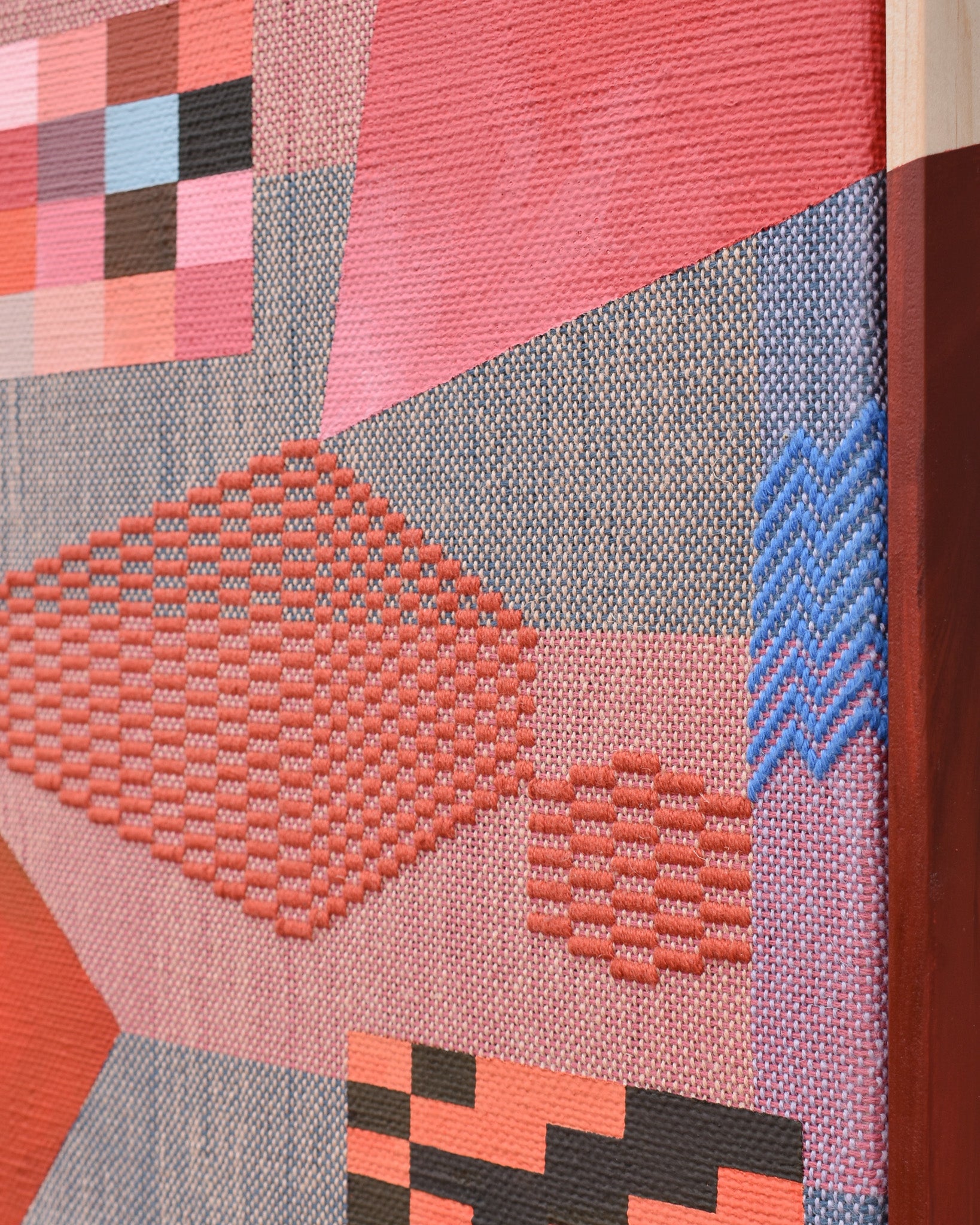 Through the combination of handwoven textiles and paint, Sarah Sullivan Sherrod plays with the balance of textures, the conversations between colors, and the connections made by shapes.