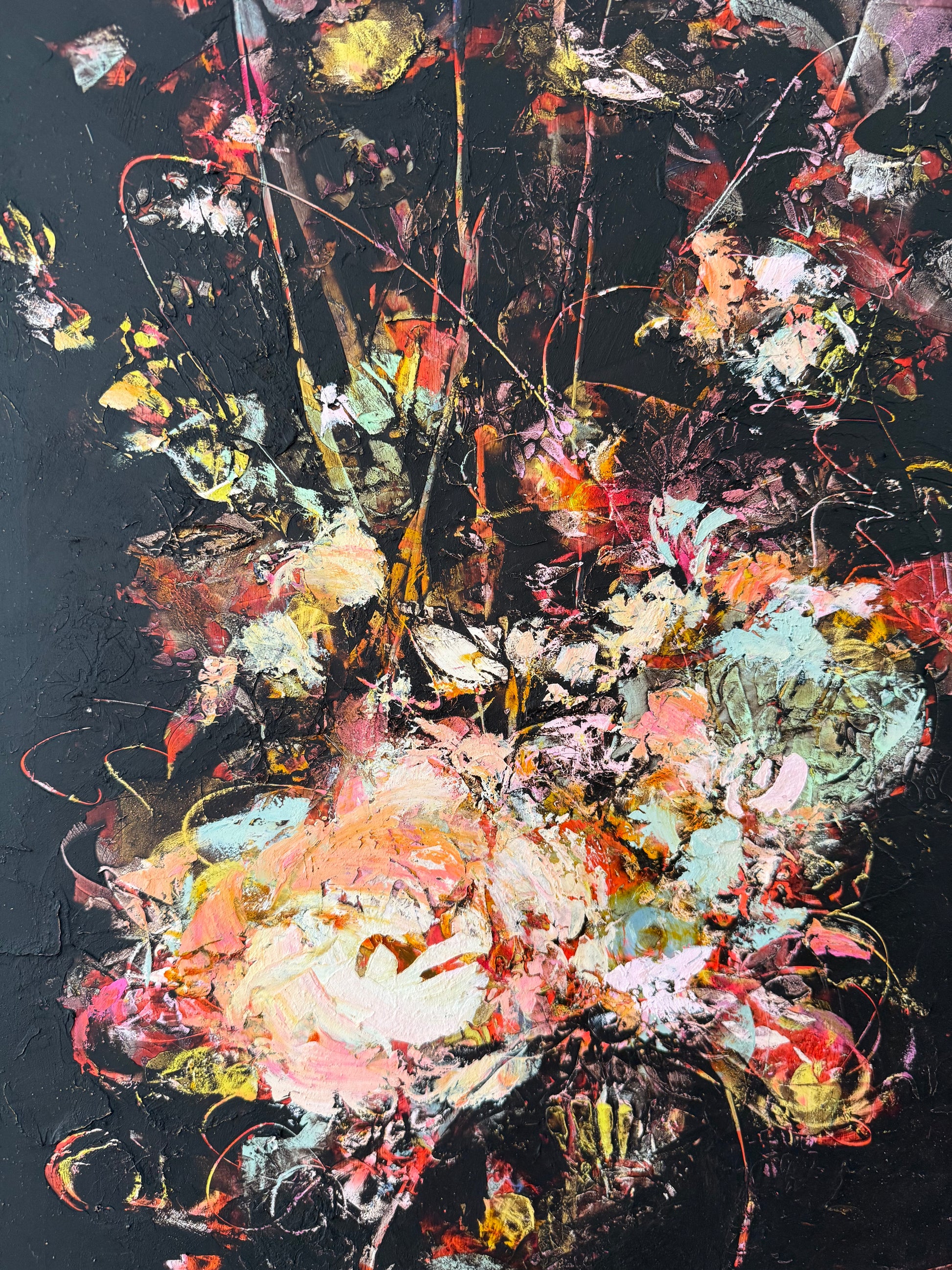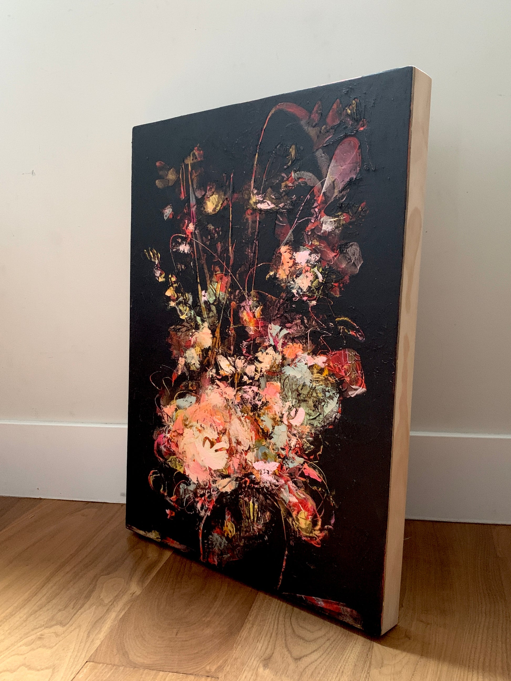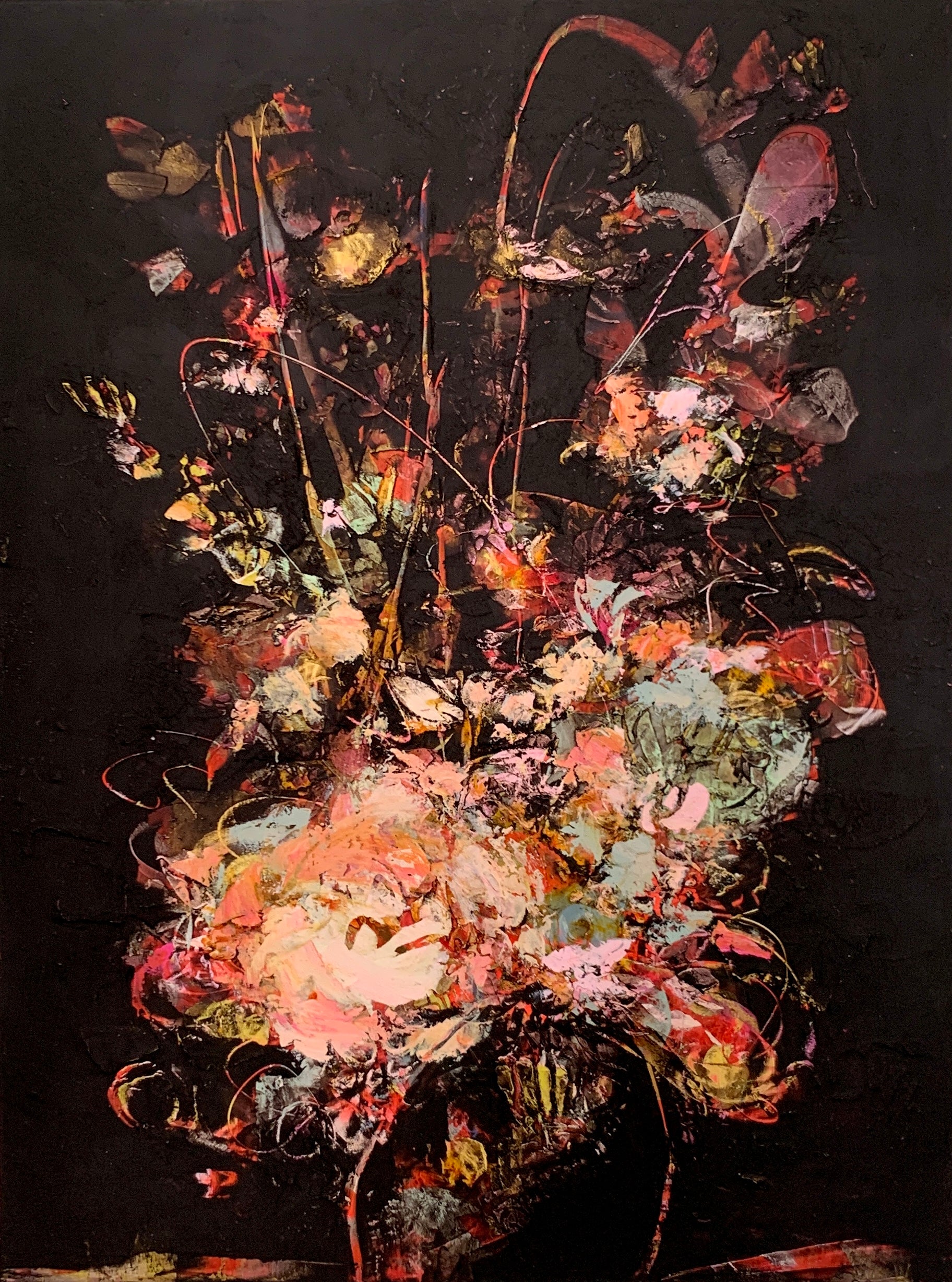 Born in Hawaii to a Japanese mother and a military aviator father, Sali Swalla’s early years were spent living in various US States, as well as Japan and Korea. After attending University in Tokyo, she moved to Los Angeles and finally began to put down roots. Having moved so often in her youth, Sali developed a unique inner life, fed by the enormous variety of places she has lived. Her work is an expression of a sense of longing and loss, tightly related with a search for wholeness and something beyond the tangible world. Process-heavy layering, veiling, and scraping away mimic this search and serves as a metaphor for personal growth.